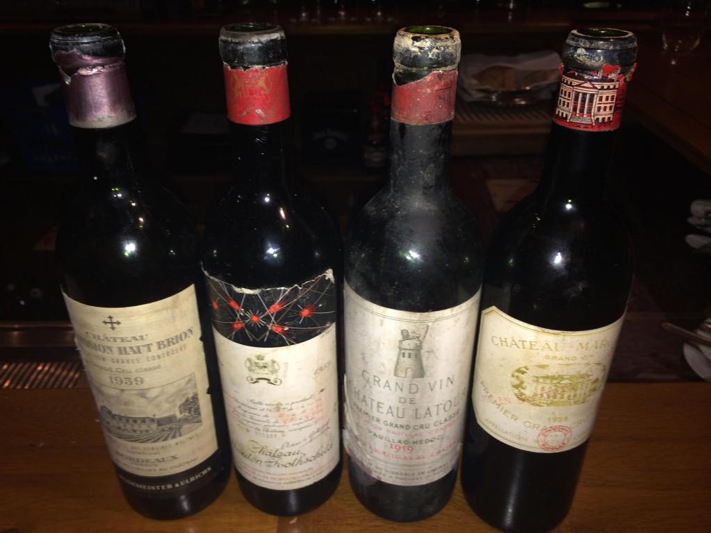 Jetzt war das Vorspiel einer Bordeaux-Orgie angesagt, wie ich sie in dieser Qualität selten erlebt habe. 1959 La Dominique war ein erstaunlich schöner, immer noch fruchtiger Zedernholzdrink mit guter Farbe – WT93. Von seiner besten Seite zeigte sich auch 1959 Gruaud Larose mit guter Frucht, Cabernetwürze, erdiger Mineralität, Zedernholz und feinem, generösem Schmelz, die 59er Säure gut stützend, aber dezent im Hintergrund – WT96. Den dritten Wein dieses Flights packe ich zu den nächsten dreien, denn da gehört er hin.