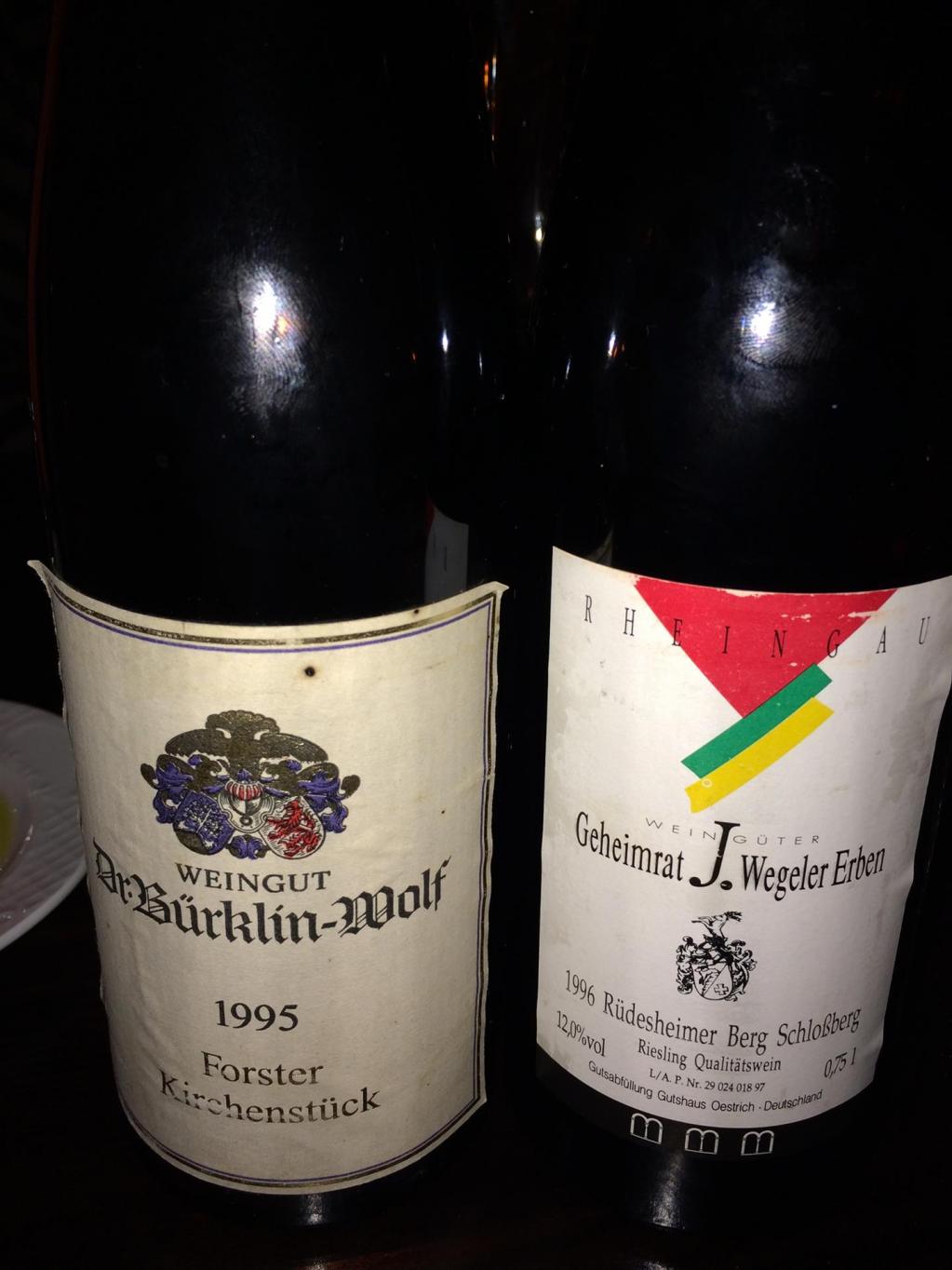 Eine Liga drunter spielte der aber ebenfalls spannende und durch die immer prägnanter werdende Säure noch sehr frisch wirkende 1996 Rüdesheimer Berg Schlossberg von Wegeler. In der Nase erstaunlich viel Kakao und reifer Boskop. Trotz der hohen Säure erstaunliche Süße am Gaumen und hohe Mineralität – WT93.