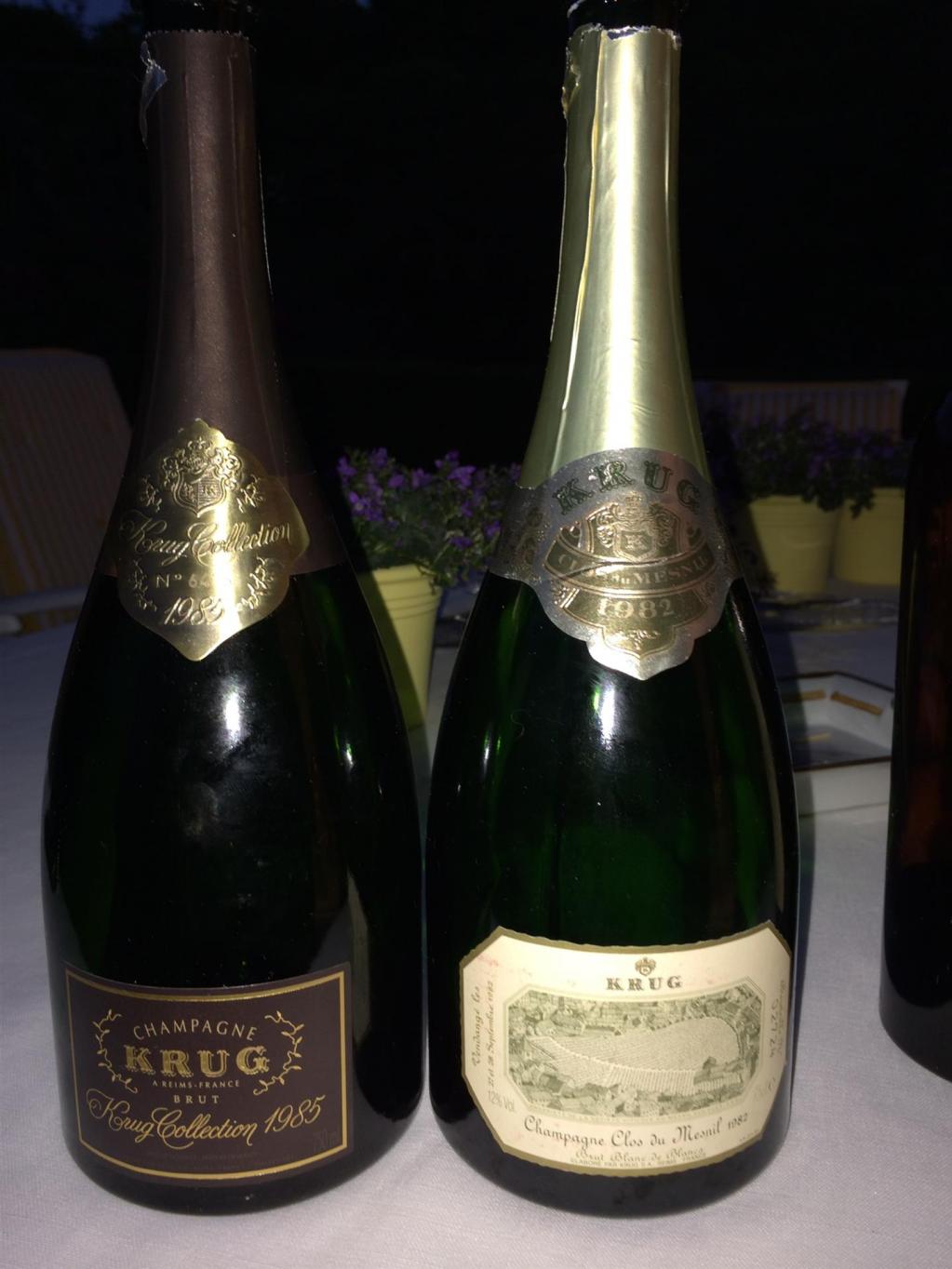 Auf eine grandiose Probe eines großen Privatsammlers war ich in die Schweiz eingeladen, genauer gesagt an den Vierwaldstättersee. Meine nicht gerade unbescheidenen Erwartungen an diesen Event wurden von der ersten Sekunde an übertroffen. Alleine schon der Blick von der Terrasse des am Hang gelegenen Hauses über den See und diese herrliche Bergwelt. Da konnte ich mich kaum dran satt sehen, und locker hätte ich es hier auch ohne wein ausgehalten. Aber das musste ich natürlich nicht. Kaum hatte mich unser Gastgeber begrüßt, hatte ich schon das erste Glas in der Hand. Darin ein perfekt gereifter 1985 Krug Vintage Brut, kräftig, reif und druckvoll – WT94. Um kaum war der geleert, kam schon ein sehr feiner, eleganter, schmeichlerischer 1982 Krug Clos du Mesnil ins Glas – WT95. Das hätte ruhig so weitergehen können, Champagner trinken mit dieser fabelhaften Aussicht.