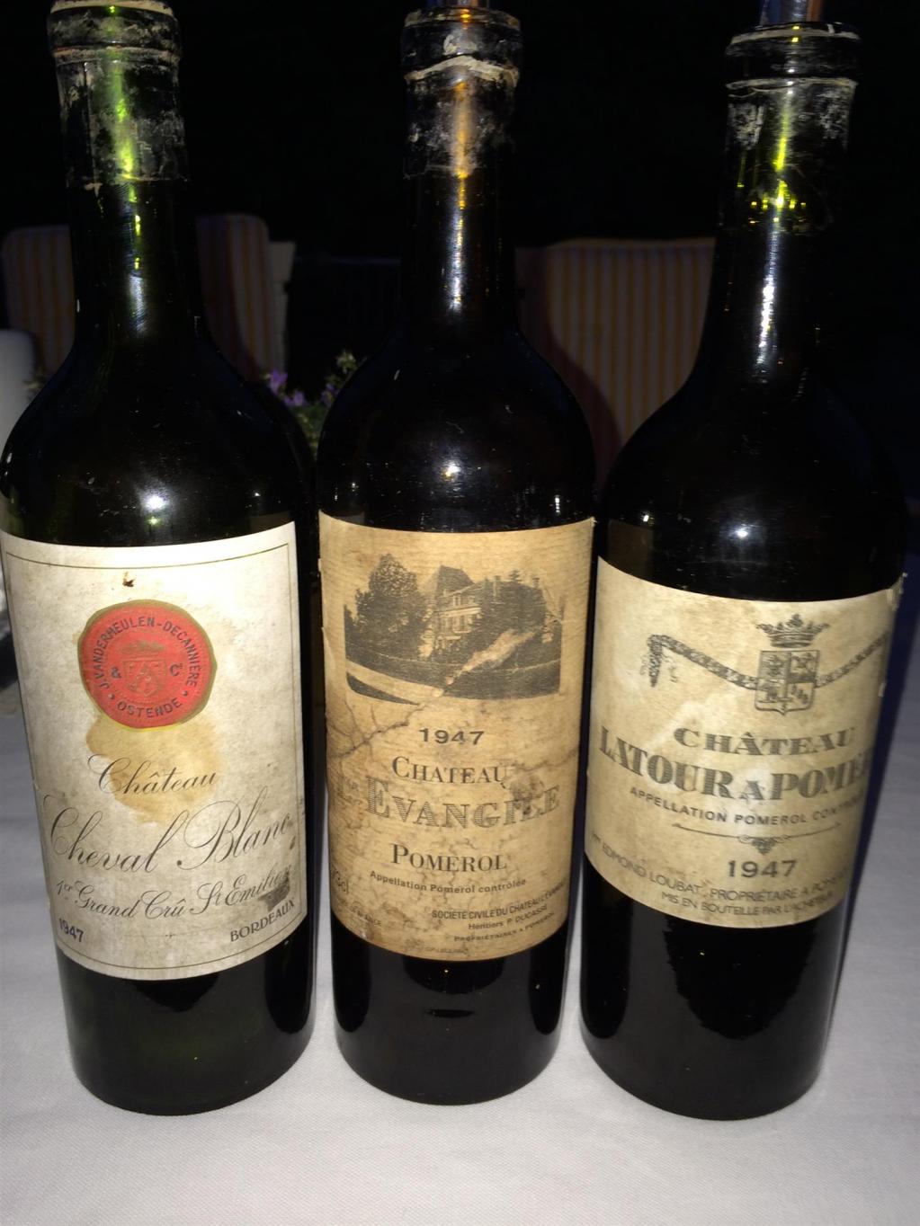 Auf hohem Niveau sehr schwierig zeigte sich 1947 Cheval Blanc Vandermeulen. Dichte Farbe, sehr schöne Nase, immer noch erstaunlich jung wirkend, erstaunlich viel Zedernholz, aber wo war dieser dekadente Schmelz, wo diese portige Üppigkeit? Das irritierte mich schon. Ich kenne reichlich müde Flaschen dieses Jahrhundertweins, die nur noch ein Schatten ihrer selbst sind, aber jung wirkende Flaschen, denen genau das abgeht, was diesen Wein so groß macht? – WT95?. All das, was dem Cheval fehlte, hatte dafür dieser weiche, generöse, schmelzige 1947 l´Evangile in einer Händlerabfüllung mit herrlicher, schokoladiger Fülle. Der war nahe der Perfektion – WT99. Auch 1947 Latour-à-Pomerol in einer Händlerabfüllung zeigte sich von seiner besten Seite, immer noch mit erstaunlicher Kraft und mit leicht kräuteriger, lakritziger Note, aber auch sehr generös mit reichlich schokoladigem Schmelz – WT98. Klar stellt sich bei diesen Händlerabfüllungen immer die Frage der Authentizität, aber es gilt auch der berühmte Spruch: The Proof is in the Bottle. Und wenn diesen großen Wein tatsächlich in dieser Form jemand hätte fälschen wollen, dann hätte er schon 1947 Lafleur nehmen müssen.