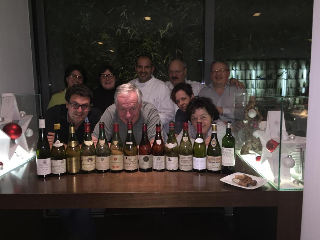 Nach diesem weißen Feuerwerk waren wir beim ersten Teil der reifen Burgunder. Viel Luft brauchte der 1934 Grands Echezeaux von Barrière Frères. Ein großer, kompletter Burgunder mit feiner, kräuteriger Note, mit Fülle, generöser Süße und sehr guter Länge am Gaumen war das – WT97. Erstaunlich jung noch die Farbe des 1934 Richebourg von Doudet-Naudin, die Nase reif mit viel Champignons, am Gaumen immer noch enorme Kraft, entwickelte sich im Glas – WT94. Richebourg vom Feinsten aus einem der großen Burgunderjahre des letzten Jahrhunderts der 1937 Richebourg von Mommesin, der sich so dicht, so kräftig, immer noch so jugendlich und mit irrer Länge am Gaumen präsentierte – WT97. Den haben wir wohl zu schnell getrunken. So, wie der im Glas ausbaute, wäre da wohl noch mehr gekommen. Ohne die Komplexität und den Druck dieses Riesen aus dem gleichen Jahr ein sehr feiner, eleganter, schmelziger 1937 Chambolle Musigny von Labouré Roi – WT93.