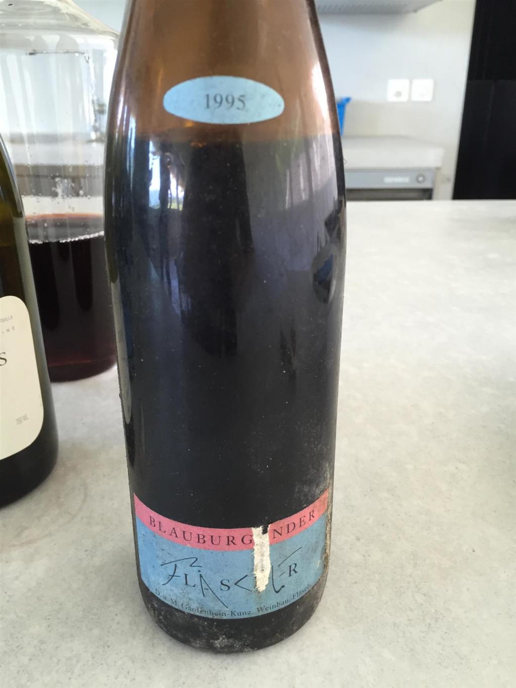 Und noch eine große Überraschung hatte Daniel Gantenbein für uns. Wir fahren ja auf dem Wege zur großen 95*1995 Verkostung. Und der erste 95er sollte jetzt hier ins Glas kommen, ein 1995 Fläscher Blauburgunder. Der erste, unfiltrierte Wein des Gutes, ausgebaut in 100% neuem Holz. Reif, aber wunderbar zu trinken. Schoggi und Kaffeenoten, Ovolmatine pur in der Nase, aber auch noch schöne Frucht, am Gaumen noch erstaunlich frisch wirkend, eher schlank und sehr elegant – WT92.