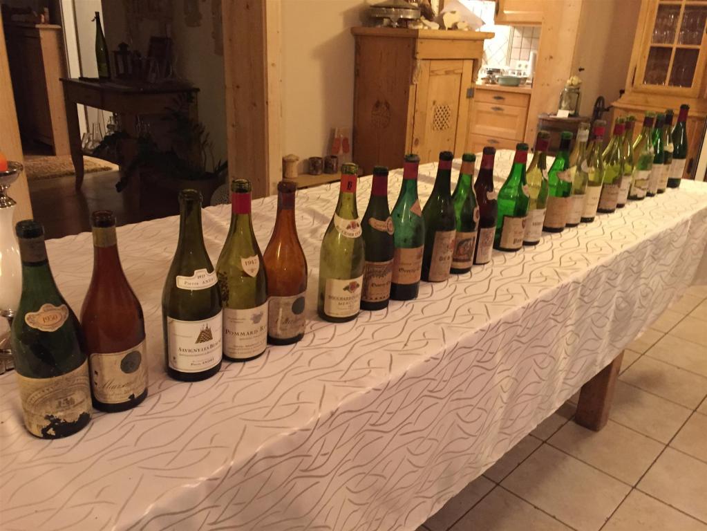 Spektakulär gleich der Start, ein 1950 Puligny Montrachet eines unbekannten Händlers, der noch so erstaunlich lebendig war, feine Kräuternase, Tabak, sehr würzig, blieb lang am Gaumen – WT93. Im anderen Glas ein 1955 Meursault Charmes Cuvée Genevrières in einer Vandermeulen-Abfüllung, der ebenfalls noch erstaunlich frisch wirkte mit am Gaumen fast aggressiver Säure – WT92.
