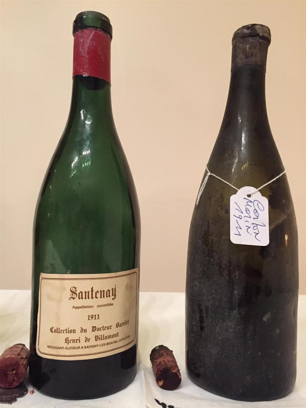 Wie von einem anderen Stern wirkte der immerhin jetzt 104jährige 1911 Santenay aus der Collection du Docteur Barolet von Henri de Villamont, bei dem einfach alles stimmte. So vital noch die Farbe, so fein die immer noch spürbare Frucht, so seidig die Eleganz und die dazu gehörige Süße dieses einfach kompletten, perfekten Weines, der dazu noch eine tolle Länge zeigte – WT100. Etwas dunkler die Farbe des 1911 Corton von Morin, sehr würzig, kräftig und lang am Gaumen, auch das ein voll intakter, unsterblicher Riese – WT98. Sehr spannend auch die sicher noch mal mindestens 50 Jahre ältere, mundgeblasene Flasche. Damals lebte man halt noch nicht in der Wegwerfgesellschaft, da wurden solche Flaschen mehrfach verwendet.