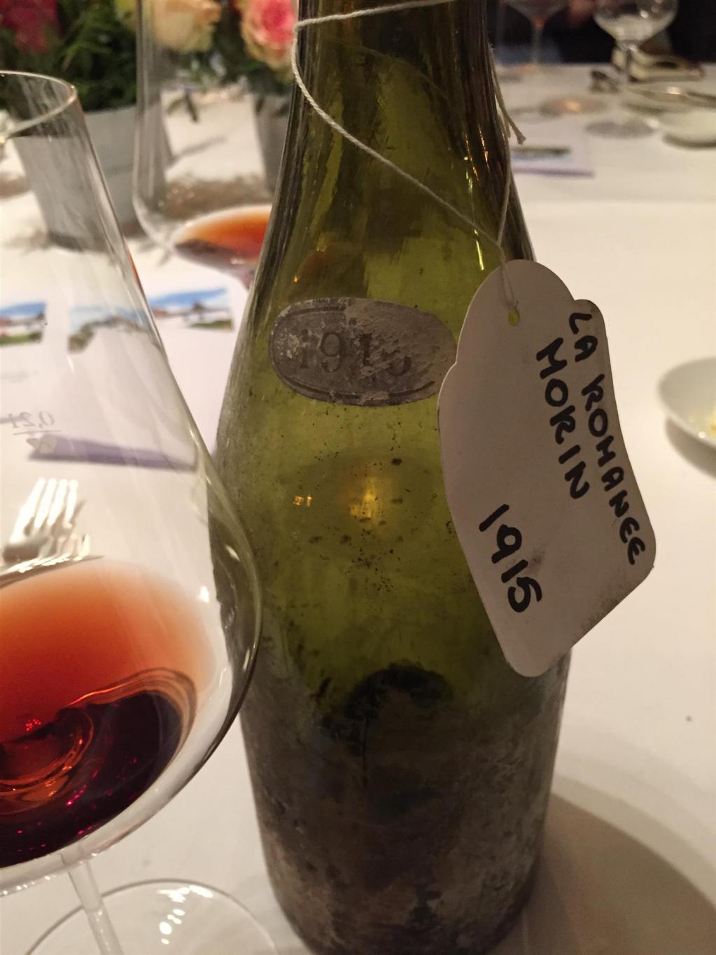 Der 1915 Chambolle Musigny ohne Etikett mit Auktionslabel in einer alten, bauchigen war ein zwar reifer, weicher, aber auch sehr würziger, komplexer Burgunder mit sehr guter Länge – WT96. Und dann kam ein Wein, für den mir eigentlich die Worte fehlen. Sicher die rarste, wahrscheinlich auch die beste Flasche aus meinem Keller. Ich durfte sie an diesem Abend mit guten Freunden teilen. Ein unsterblicher, hundertjähriger Wein, dieser 1915 La Romanée von Morin mit so brillianter Farbe, mit herrlicher Frucht und die Süße einfach in einer anderen Dimension. Nicht nur ein hundertjähriger Wein auch ein Jahrhundertwein. Nein, die WT100 reichen da nicht, das ist eine andere Dimension. Freude, Demut, Dankbarkeit so etwas trinken und teilen zu dürfen.
