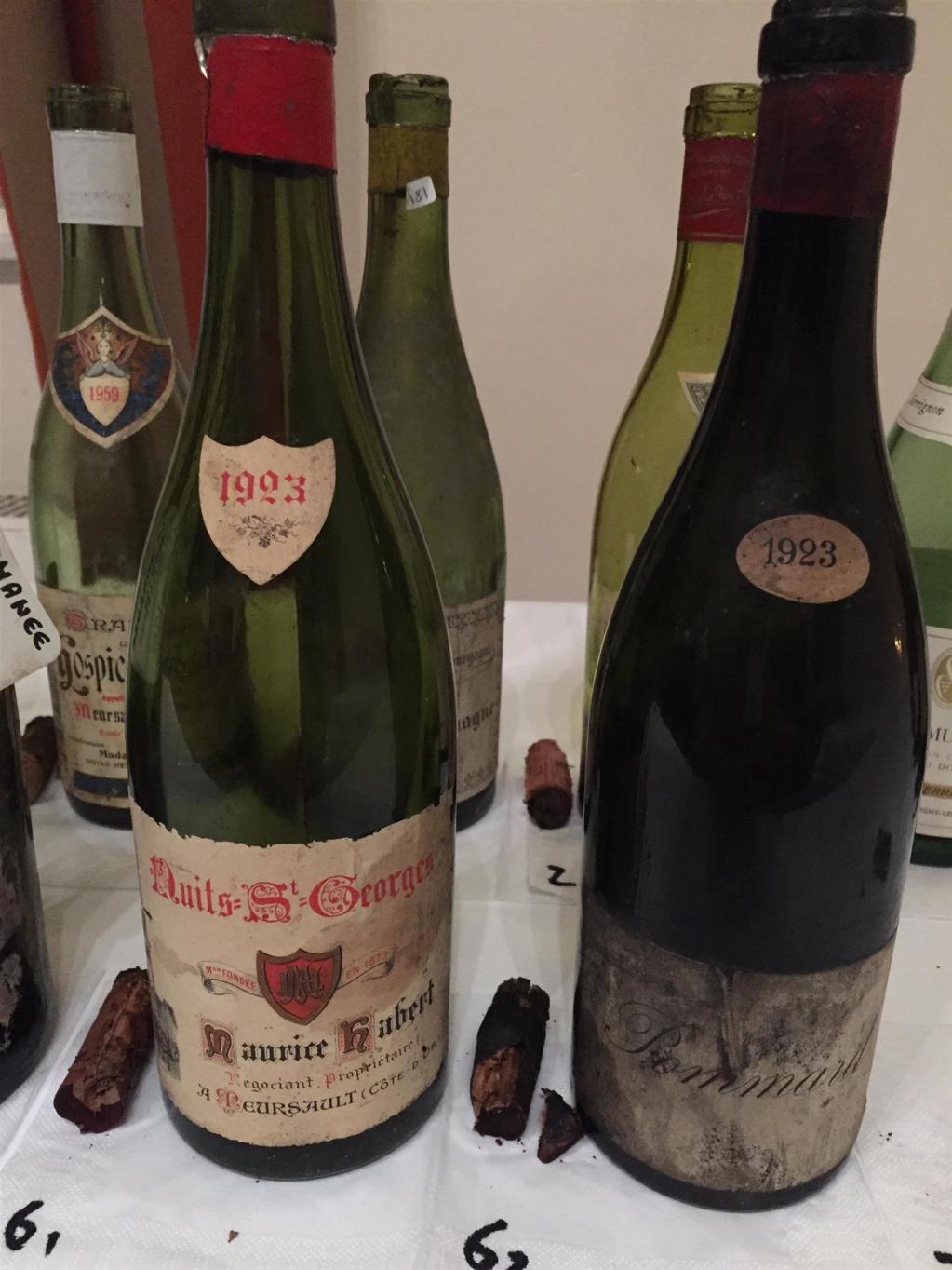 Sehr fein, elegant, süß und finessig der 1923 Nuits-St.-Georges von Maurice Habert, der immer noch gute Frucht und gute Säure besaß – WT96. Der 1923 Pommard in einer Händlerabfüllung mit unleserlichem Etikett, aber gutem Füllstand hatte leider Kork.