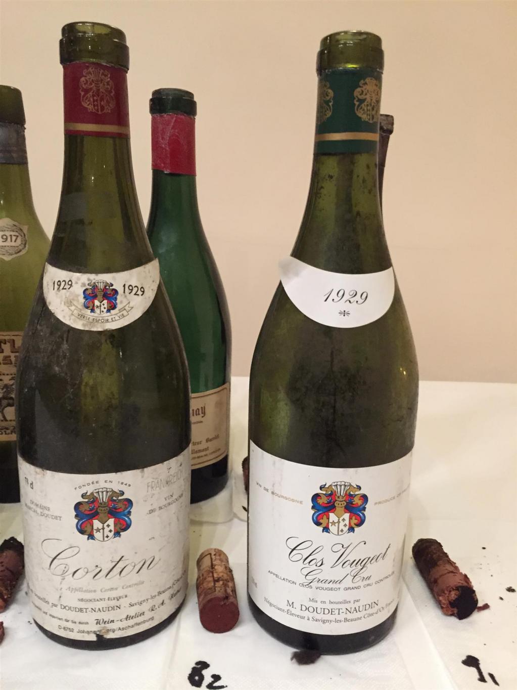 Eine immer noch recht jung wirkende Farbe hatte der 1929 Corton von Doudet-Naudin. Auch in der Nase und am Gaumen präsentierte er sich noch fast wie ein Jungspunt mit wunderbarer Frucht, mit süßem Schmelz, enormer Kraft und Länge. Baute enorm im Glas aus – WT97. Auch der 1929 Clos Vougeot von Doudet-Naudin ist eigentlich ein großer wein und man spürt deutlich die immer noch vorhandene Substanz. Aber er wirkte etwas pilzig (hatte ich bei diesem Wein vor über 20 Jahren schon mal) und zeigte immer mehr einen leichten Korkton.