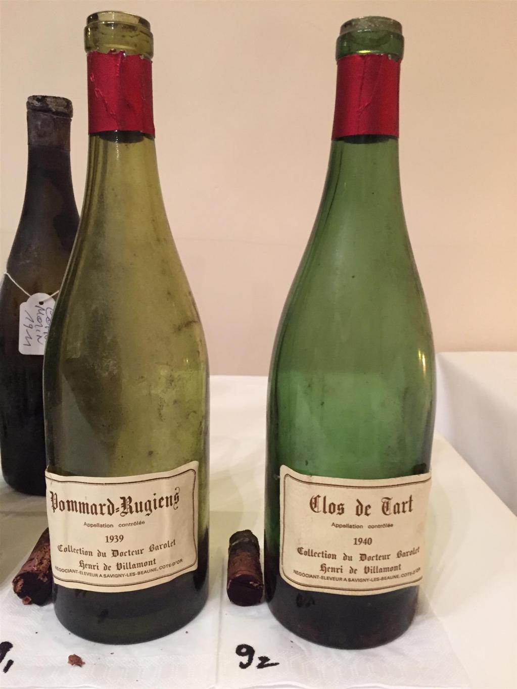 Und dann machten wir wieder einen kleinen Ausflug in Un-Jahre, aus denen es eigentlich nichts trinkbares geben sollte. Der 1939 Pommard Rugiens aus der Collection du Docteur Barolet war jetzt nicht gerade ein Blockbuster, aber immer noch ein recht passabler, gut trinkbarer wein – WT89. Ganz anders der 1940 Clos de Tart aus der Collection du Docruer Barolet, der nach leicht verhaltenem Start förmlich im Glas explodierte und sich zu einem großen, absolut stimmigen Burgunder entwickelte, der auch aus einem Top-Jahr wie 1937 kommen könnte – WT97.