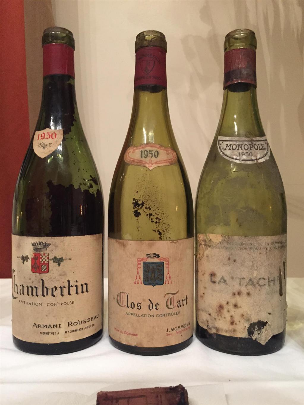 Ein Dreierflight Burgund war als nächstes angesagt, wiederum aus Wineterminators Geburtsjahr. Eleganz pur beim 1950 Chambertin von Armand Rousseau, der die anfängliche Ladehemmung schnell ablegte und auf die Überholspur ging. So ein absolut stimmiger, großer Burgunder, geradezu erotisch die betörende Nase mit reifer Erdbeere, am druckvollen Gaumen Seide pur und unendlicher, süßer Schmelz – WT99. Etwas kompakter in der Nase war der 1950 Clos de Tart von Mommessin, der dafür um so expansiver am traumhaften, sehr druckvollen Gaumen war. Einfach irre, was da mit herrlicher Süße und ewiger Länge abging – WT99. Eigentlich hätte der dritte Wein mit diesen beiden voll auf Augenhöhe sein müssen, aber dieser 1950 La Tâche von DRC war, obwohl optisch einwandfrei, nicht die beste Flasche. Bräunlich und reif die Farbe, oxidative Noten in der Nase, aber auch kräuterig-lakritzige Noten, Geraniol, leicht pilzig am Gaumen wirkend. Man spürte die Substanz dieses Weines, aber er sang einfach nicht – WT90.