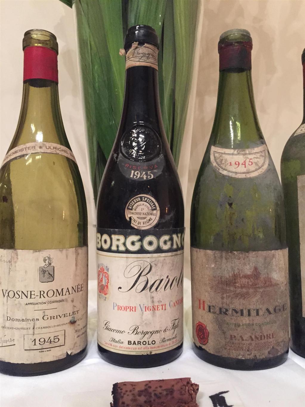 Damit waren wir im Jahrhundertjahrgang 1945, in dem die Natur im Frühjahr mit späten Frösten für eine natürliche Begrenzung der Erntemengen und anschließend mit einem Paradesommer für perfektes Lesegut gesorgt hatte. Der 1945 Hermitage von P.A. André hatte nicht nur eine kräftige, altersfreie Farbe, er wirkte auch in der gesamten Anmutung noch so frisch. Da war unglaublicher Druck und Tiefgang am Gaumen, unterstützt von einer guten Säure – WT98. Und dann dieser 1945 Barolo Riserva von Borgogno, die frischere, süßere, fruchtigere, erheblich intensivere Version des 1885ers, so druckvoll, so süß, so schmelzig und so kräftig, ein Barolo wie vom anderen Stern – WT99. Ein Riese wäre sicher auch der 1945 Vosne Romanée von Grivelet gewesen, Superfarbe, Kraft, Substanz – aber leider Kork.