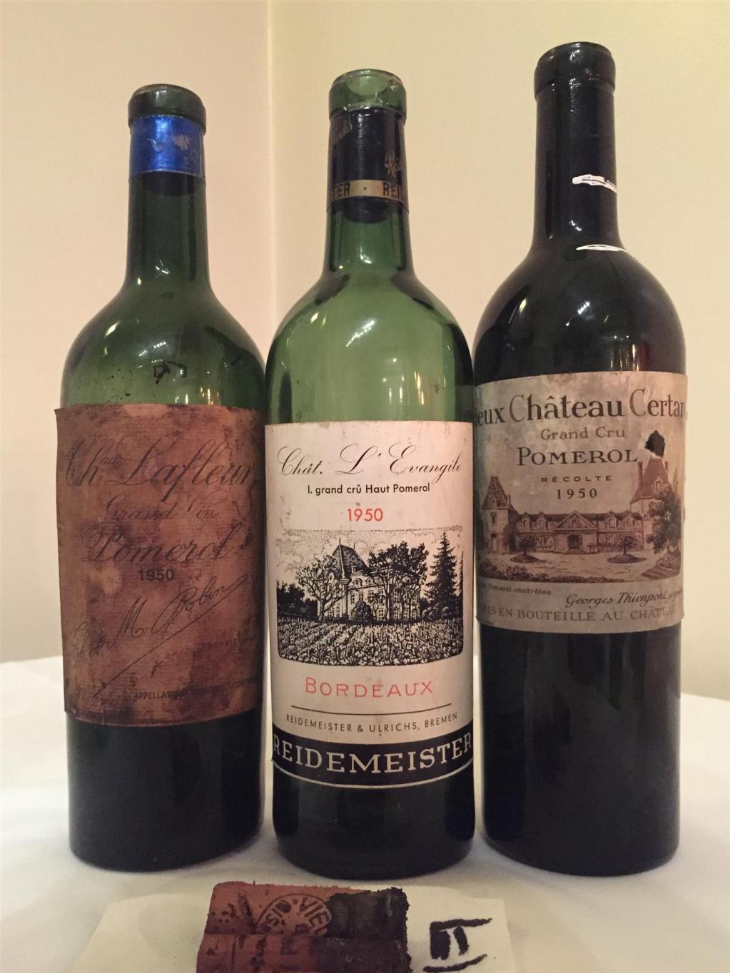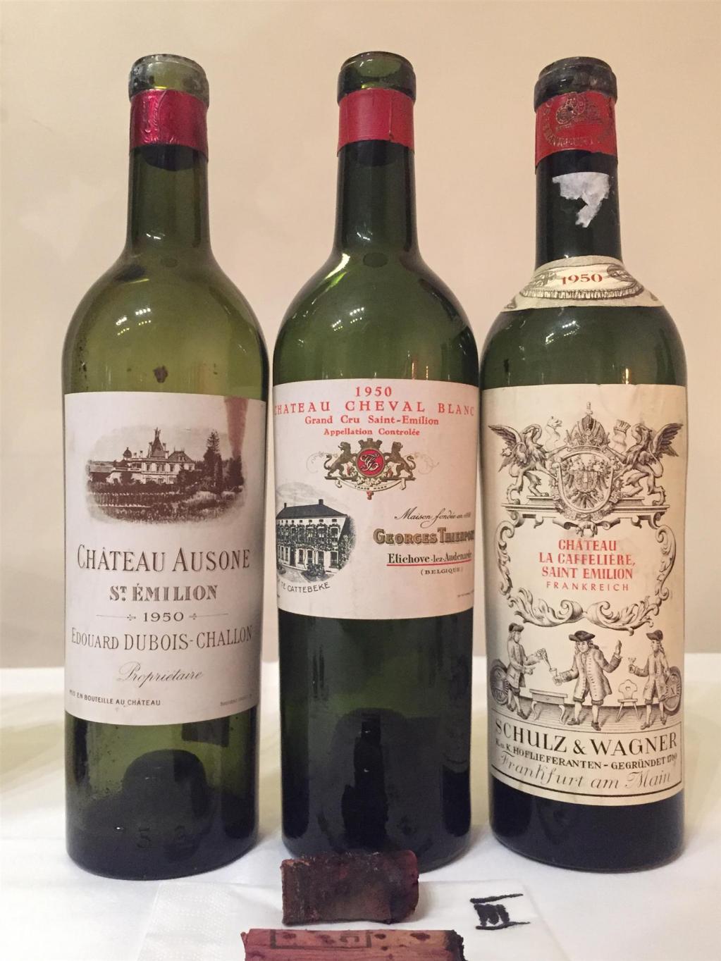 Und dann ging es gleich im nächsten Flight auf diesem Niveau weiter. Der 1950 Ausone war ebenfalls die schiere Perfektion. So ein unglaublich dichter, komplexer Weinaristokrat mit feiner Kräuternote und irrer Länge, intensive Mineralität, gewaltige Struktur, feine Süße, ein Wein der Marke „Sprachlos“ – WT100. Da kam auf extrem hohem Niveau selbst der grandiose 1950 Cheval Blanc in einer belgischen Thienpoint Abfüllung trotz perfektem Füllstand nicht mit. Aber auch das ein Wahnsinnswein. 1950 gehört zu den größten Chevals überhaupt – WT99. Gegen diese Boliden kam der 1950 La Gaffelière in einer deutschen Schulz&Wagner Abfüllung nicht mit. Der hatte zwar auch Finesse und feinen Schmelz, aber auch schon oxidative Noten und wirkte sehr reif – WT92. Kenne ich deutlich besser.