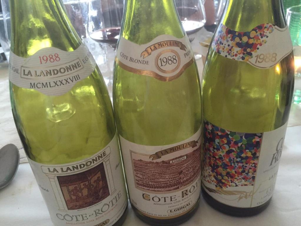 Schlichtweg Weltklasse, was dann ins Glas kam. 1988 war eines der besten Guigal-Jahre überhaupt. Diese drei LaLas aus diesem Jahr jetzt in perfektem Zustand nebeneinander trinken zu dürfen, das war ein Erlebnis, das sich nur schwer in Worte fassen lässt. Ganz klar dreimal WT100 ohne Wenn und Aber. Der trüffelige 1988 La Landonne war erstaunlicherweise der feinste und eleganteste der drein Weine. 1988 La Mouline war sicher der kompletteste mit seinem Pfauenrad an Aromen und dieser riesigen Gewürzpalette. 1988 La Turque war der üppigste, hedonistischste, am süchtigsten machende. Alle drei Weine waren absolut stimmig, fehlerfrei und voll auf dem Punkt, aber noch mit langer Zukunft. Kein Wunder, sind sie doch mit jetzt über 25 Jahren im „besten Guigal-Alter“.