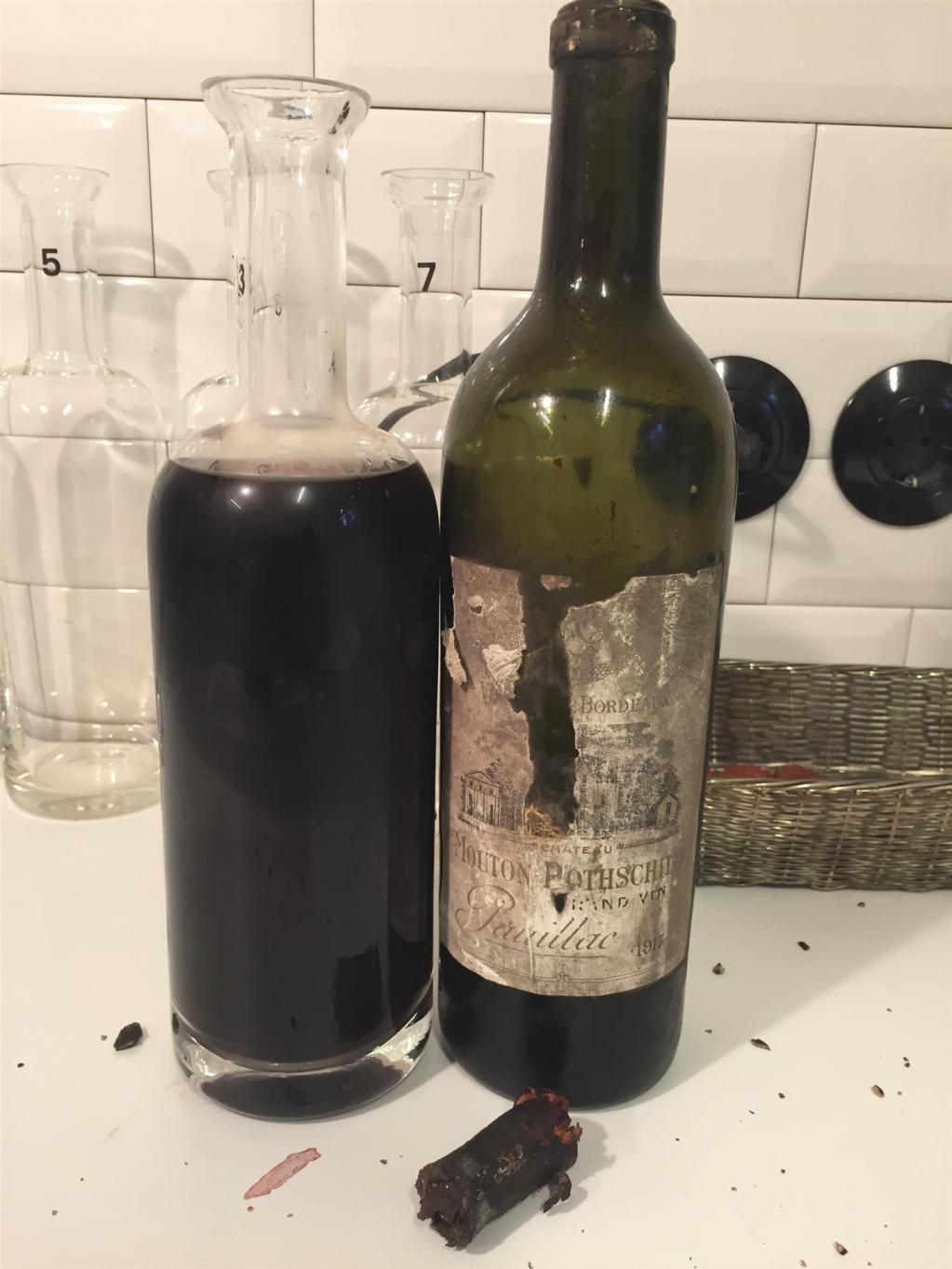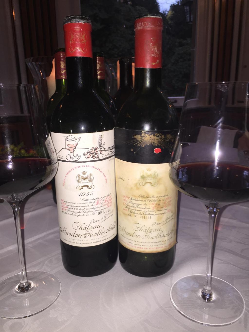Also haben wir vor zwei Jahren zugeschlagen, als Altweinpabst Jan-Erik Paulson eine garantiert echte Flasche in gutem Zustand aus seriöser Herkunft anbot. Wir haben den Preis der Flasche durch vier geteilt, so dass es noch halbwegs für jeden Einzelnen erträglich war. Jetzt war es endlich soweit. In kleiner, feiner Runde trafen wir uns für das große Ereignis. Einer aus unserer Runde stellte in seinem Haus die feine Tafel und engagierte einen Spitzenkoch, der uns mit einem hochklassigen Menü verwöhnte. Wir alle stellten aus unseren Kellern die „Begleitmusik“, die nur aus großen Mouton-Jahrgängen bestand.