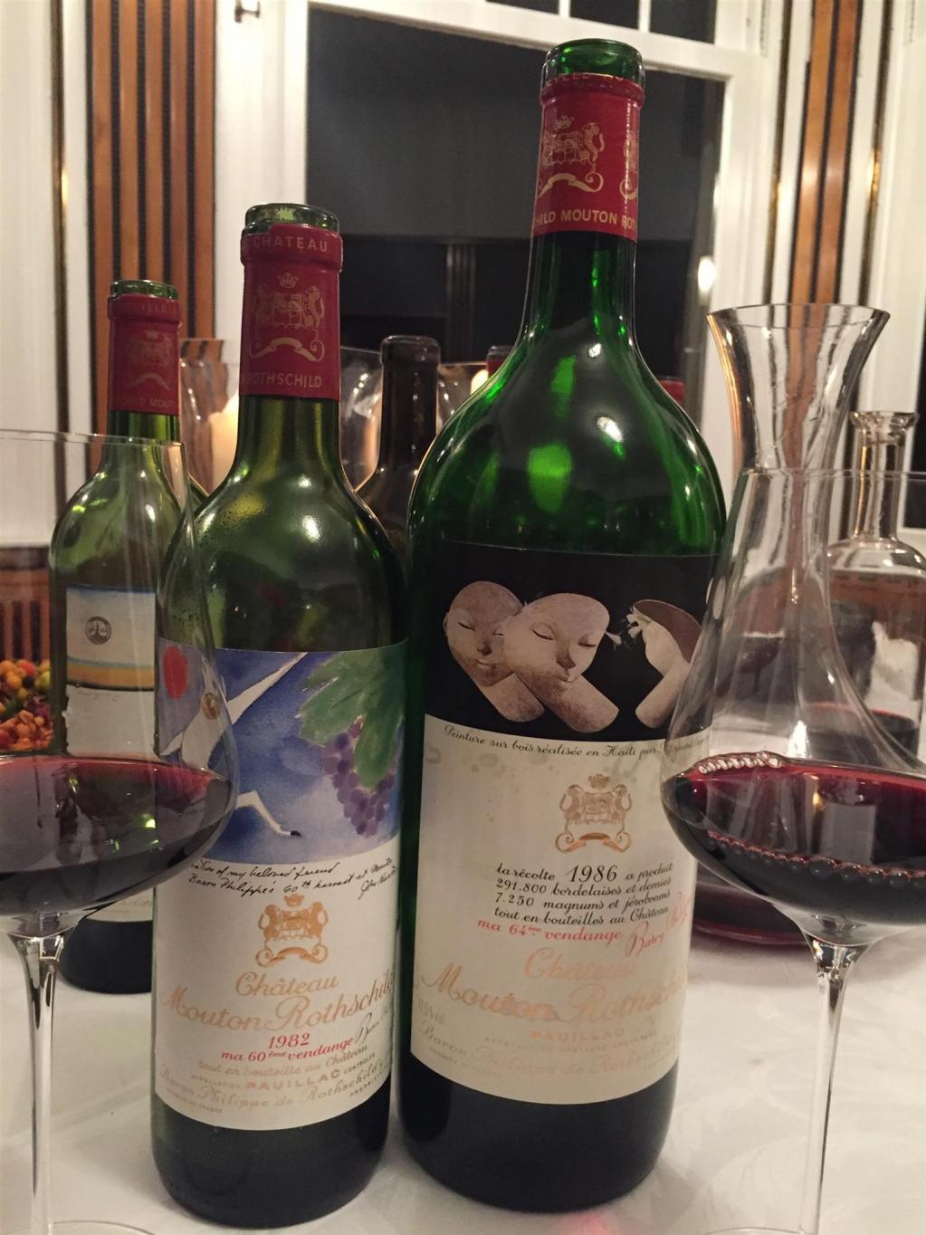 Hat dieser 1945 Mouton Rothschild Nachfolger, Weine, die diese großen Schuhe irgendwann mal ausfüllen können? Aber ja, vielleicht sogar zwei. Von Raoul Blondin, dem legendären Kellermeister von Mouton, der 60 Jahrgänge Mouton vinifizierte, stammt die Aussage, dass der 82er im Fass dem damaligen 45er sehr ähnelte. Nur muss man jetzt wissen, dass der 45er sich erst in der zweiten Hälfte der 80er, also nach über 40 Jahren, einigermaßen öffnete. Und dieser unglaubliche 1982 Mouton Rothschild, der durchaus das Potential zum Nachfolger hat, ist mal gerade zarte 33 Jahre alt. Ich habe noch einen Schluck des 45ers stehen gelassen und den dann mit 82 und 86 verglichen. Der 82er zeigte, natürlich dramatisch jünger, eine unglaubliche Verwandtschaft und Ähnlichkeit mit dem 45er. Ein perfekter, sehr minziger Traummouton, den unsere Nachfahren in 20-30 Jahren so zelebrieren werden wie wir heute den 45er. Das ist heute ein so überwältigendes, perfekt strukturiertes Konzentrat, dicht, kraftvoll, Cassis pur, aber auch viel Minze und ein erster Hauch Eukalyptus, da geht auch heute "schon" nur eine Wertung – WT100. Aus der Magnum hatten wir hier den 1986 Mouton Rothschild. In seiner kurzen, knackigen Fruchtphase 1989 war das der größte Jungwein, den ich je im Glas hatte, ein schier unglaubliches Erlebnis, damals in dieser kurzen Phase über 50(!)mal genossen. Für € 25 gab es damals im Mövenpick Caveau die halbe Flasche eines Weines, wie ich ihn bis dato noch nie getrunken hatte, schwarz wie Ägyptens Nächte, sehr konzentrierte Frucht, hohe Mineralität, so präzise strukturiert mit einer unglaublichen Länge. Wir haben damals alle großen Weine, derer wir habhaft werden konnten, gegen Mouton verkostet. Doch der war immer obenauf. Und dann ging er plötzlich fast von einem Tag auf den anderen völlig zu und ließ lange Jahre nichts mehr raus. Jetzt kommt er so langsam wieder, ein beeindruckendes Kraftbündel mit Mörderpotential, die Frucht noch etwas verhalten, sehr mineralisch, Graphit, Sattelleder, wurde im Glas immer minziger und auch der erste Hauch von Eukalyptus stellte sich ein – WT97+. Auch dieser 86er zeigte deutlich Ähnlichkeit mit dem 45er. Er wird nur noch länger brauchen als der 82er.