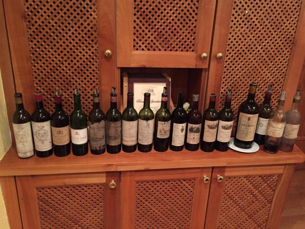 Mit zwei Weißweinen starteten wir in den spannenden Abend. Cognacfaben war der 1947 Carbonnieux Blanc, aber immer noch erstaunlich vital mit guter Mineralität und feiner Bitternote – WT90. Noch recht frisch wirkend durch die gute Säure der 1950 Laville Haut Brion, dem es aber etwas an Tiefgang fehlte – WT87.
