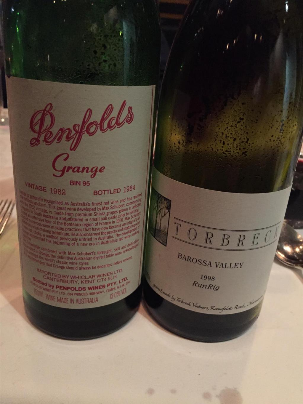 Die beiden letzten Flights hatten wir bewusst auseinandergerissen, denn so konnten als perfekter Schlusspunkt zwei der größten Shiraz der Erde gegeneinander antreten. In perfektem Zustand der 1982 Penfolds Grange süßer Cassisfrucht, Minze, viel Eukalyptus, bei aller Opulenz erstaunlich elegant und fein, zu Recht eine Legende – WT99. Der deutlich jüngere 1998 Torbreck RunRig ist deutlich kraftvoller, mit mehr aromatischem Druck und dekadenter Fülle – hier und heute fast auf Augenhöhe – WT97. Gegenüber meiner letzten Flasche 2006 hat der Torbreck deutlich an Struktur und Finesse gewonnen.