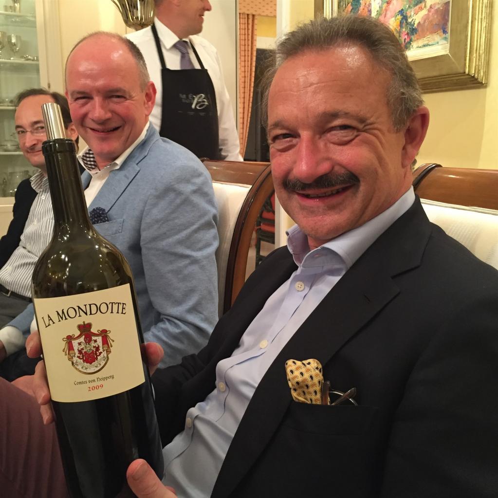 Richtig spannend wurde es für mich, da ich diese älteren Semester schon häufiger und vor allem anders und besser getrunken habe, mit dem nächsten Flight. Zwei absolute Jahrhundertweine standen hier aus Magnums gegeneinander, 1982 Lafite Rothschild und 1982 Mouton Rothschild. Schier unglaublich dieser Lafite, der bis vor wenigen Jahren komplett verschlossen und ehrlich gesagt auch enttäuschend war. Viele in der Weinwelt hatten ihn längst abgeschrieben. Und jetzt geht dieser Gigant auf die Überholspur in einer Art und Weise, die schlichtweg atemberaubend ist. So offen wie aus dieser Magnum hier hatte ich ihn noch nie im Glas. Bei aller Eleganz, Feinheit und Mineralität eines großen, stimmigen Lafite hatte der eine derart explosive, druckvolle Aromatik, war so ätherisch mit viel Minze und auch etwas Eukalyptus, da war ich blind bei Mouton. Und warum dann „nur“ WT99+ für diesen Riesen? Weil da noch mehr kommt, nächstes Jahr, in 5 Jahren und in den Jahrzehnten danach. Das wird für Jahrzehnte ein großer, perfekter Wein sein, der die meisten von uns locker überleben wird. Der Mouton im anderen Glas war so, wie ich den Lafite aus den letzten Jahren kenne. Blutjung, sehr verhalten, ein gewaltiges, sehr mineralisches Konzentrat, das sich nur zögerlich öffnete. Aber mit was für einer Substanz, was für einem Mörderpotential! Erst dachte ich, die Weine wären falsch herum eingeschenkt. Aber Thomas Kuntz, der den Sommelierpart an diesem Abend wieder meisterlich spielte, schenkte mir beide Weine noch mal aus den Originalflaschen ein. War jetzt der Lafite der größere Wein? Zu Anfang ja. Aber im Laufe des Abends holte der Mouton immens auf. Immer mehr kamen Cassis pur, Minze, Sattelleder, der Mouton-typische Bleistift und auch ein erster Hauch von Eukalyptus. Aus meinen anfänglichen WT97+ wurde schnell mehr. Ja, dieser 82er Mouton ist der legitime Nachfolger des legendären 1945 Mouton Rothschild. Moutons damaliger Kellermeister Raoul Blondin, der beide Weine vinifizierte, hatte schon recht, als er damals sagte, dass der junge 82er aus dem Fass so roch wie seinerzeit der 45er. Zukunft ohne Ende hat dieser Wein. Was wird es für ein Fest für die Sinne sein, diese Weine die nächsten 30 Jahre und auch noch länger miteinander zu vergleichen. So man denn hat, natürlich.