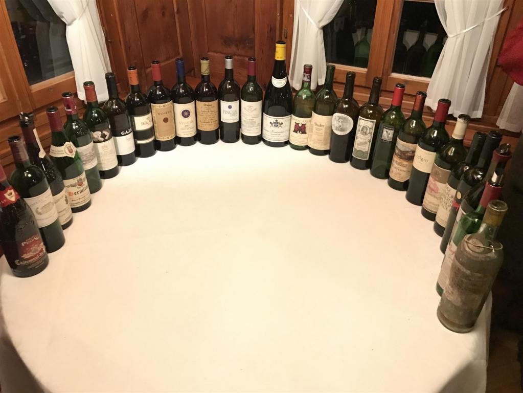 Reife Kalifornier aus den Golden Seventies im ersten Flight. In Kalifornien wurden damals großartige Weine erzeugt mit Bordeaux-Stilistik und niedrigem Alkohol, Nur der 1974 Phelps Insignia zeigte in diesem Mörderflight deutliche Reife und erzählte eher von alten Zeiten. Aber auch der zeigte noch eine deutliche Substanz und war gut trinkbar – WT88. Die geniale Minz- und Eukalyptus-Legende 1974 Heitz Martha's Vineyard war noch praktisch taufrisch. Baschi hatte diesen Wein, der im Glas förmlich explodierte, 6 Stunden vorher dekantiert. Zeigte immer noch eine feine, rotbeerige Frucht und wirkte bei aller Nachhaltigkeit und Länge sehr elegant – WT98. Schier unsterblich auch der zeitlos elegante 1974 Ridge Monte Bello, der sich enorm im Glas entwickelte und dabei immer minziger wurde - WT97. Einfach perfekt der unglaublich druckvolle 1978 Shafer mit tiefer, dunkelbeeriger Frucht, mit viel Minze, enormer Kraft, Substanz und Länge, ein faszinierender Wein, der einfach sprachlos machte - WT100. Kräftig mit noch viel Zukunft auch der 1978 Mayacamas, mit dem ich mich nie richtig anfreunden konnte. Aber dieser etwas rustikal wirkende Brocken hat immer noch ein deutliches Tanningerüst, der könnte in 10 Jahren für eine große Überraschung gut sein - WT96.