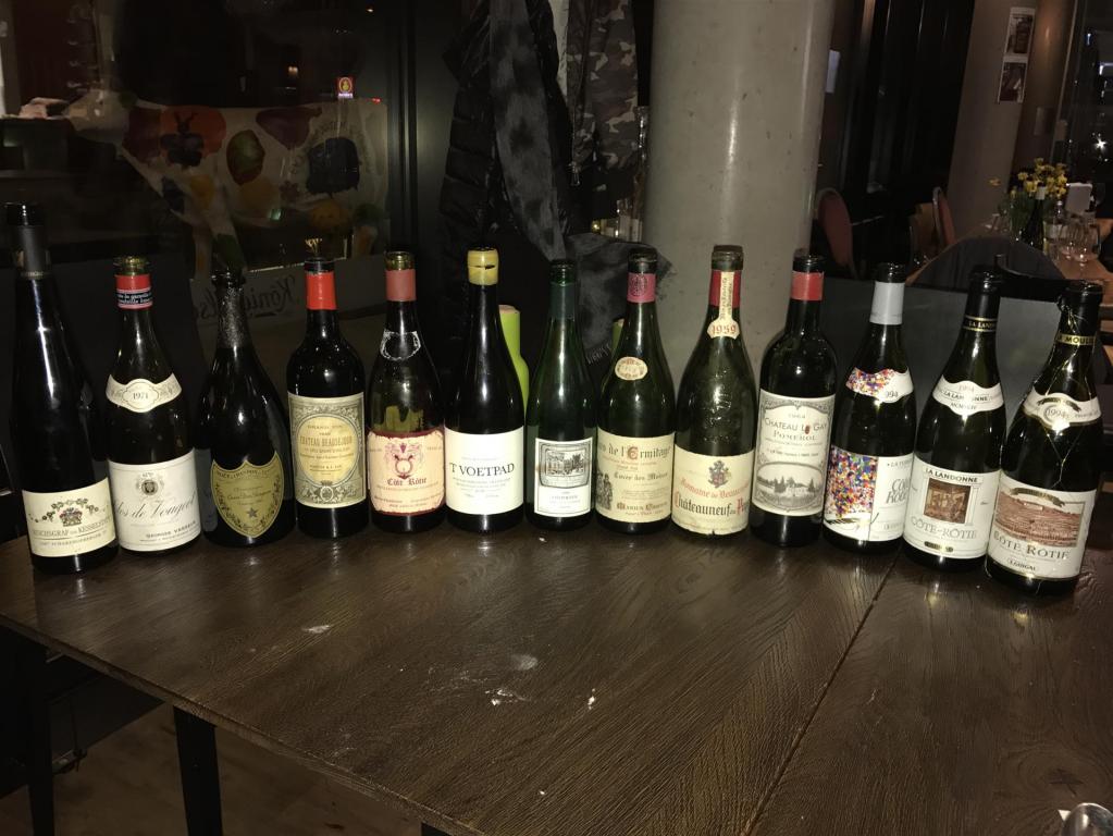 Reif, weich, aber hoch aromatisch mit schöner Schiefernote als Einstieg 2007 Scharzhofberger 1G von Kesselstatt, der momentan leicht in die 2007er Breite geht und süßer wirkt. Aber das kann sich geben. Es wäre nicht die erste 2007er Wiederauferstehung – WT92. Ein perfekt gereifter Burgunder aus einem Guss der sehr elegante 1971 Clos Vougeot von George Vasseur mit feinem, süßem Schmelz – WT94. Auf dem Punkt und perfekt gereift mit immer noch gutem Mousseux war der 1990 Dom Perignon – WT95. Noch so frisch, sehr kräftig mit leicht portigen Noten und enormer Länge wirkte der faszinierende 1949 Beauséjour Becot, dem man die 68 Jahre nicht anmerkte – WT94. Speckig die Nase des 1978 Côte Rotie von Marius Chambeyron, sehr dicht mit druckvoller, würziger Aromatik, entwickelte am Gaumen immer mehr generöse Süße – WT94. Gemischter Satz nennt man das in Österreich, was Südafrikas Winzerstar Eben Sadie hier mit 9 verschiedenen Rebsorten von zum Teil über 100 Jahre alten Rebanlagen als 2011 T´Voetpad von Sadie Family auf die Flasche brachte. Hoch spannend mit enormem Tiefgang, burgundisch im besten Sinne, entwickelte immer mehr cremige Textur – WT94. Prächtig entwickelt hat sich der 1985 Côte Rotie in einer Berry Brothers Abfüllung. Das war vor zwölf Jahren mal ein Schnäppchen auf einer Koppe-Auktion. Jetzt zeigte sich meine vorletzte Flasche in absolut bestechender Form und gingblind bei den versammelten Experten als großer Bordeaux vom linken Ufer durch, wobei Palmer genannt wurde. Kein Wunder, hatte er doch eine wunderbare, präsente, würzige, rotbeerige Frucht und war einfach rund mit samtiger Eleganz – WT95. Noch überraschender der 1955 l´Ermitage Cuvée des Moins von Maurice Chierpe, noch so blutjung wirkend mit präziser, dunkler Frucht, sehr mineralisch mit enormem Tiefgang, minzig unmit viel Eukalyptus, gewaltige Länge – WT96. Aber das dieses Zeugs hervorragend altern kann, hatte uns erst vor sechs Jahren auf der Braui meets Schorn II ein immer noch verdammt guter 1895er Hermitage dieses Hauses gezeigt. Der Wein des Abends war danach wohl der 1959 Beaucastel, der in perfekter Weise die Würze eines großen Chateauneuf mit der Pracht und Fülle eines großen Burgunders verband – WT97. Sehr jung mit noch viel Zukunft wurde es zum Abschluss. Und dieser Flight hatte für mich eine ganz persönliche Bedeutung. 1998 auf meiner ersten Prowein hatte mir Guigal Senior die drei 94er LaLas geöffnet, die nur als sogenannte „Bückware“ unterm Tresen standen. Und da die Messe damals deutlich kleiner war, man LaLas nicht spuckt und ich Herrn Guigal in immer kürzeren Abständen wieder auf seinem Stand besuchte, war das für mich eine sehr beeindruckende Prowein, die ich dann auf einer Wolke schwebend mit seeligem Gesichtsausdruck verließ. Einfach sexy der 1994 La Turque – WT95+. Strukturierter, straffer, klassischer der 1994 La Landonne – WT94+. Und wieder das große Pfauenrad der Gewürze dieser Erde beim 1994 La Mouline, der uns in seiner unendlichen Würze auf einen großen, orientalischen Markt entführte – WT96+. Keine Eile bei allen drei Weinen, die noch enormes Potential zeigten und sich über längere Zeit weiterentwickeln dürften.