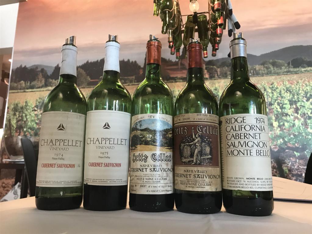 Tief in die Siebziger ging es im zweiten Flight, wo in Kalifornien Legenden erzeugt wurden. Inzwischen haben das leider auch die Amis mitbekommen, die sich auf Auktionen hemmungslos auf diese Weine stürzen. Die Preise gehen entsprechend durch die Decke. Da tut es gut, wenn man einen so großzügigen Freund wie den Eugen hat. Gleich zu Anfang zwei große Überraschungen, denn die beiden Chappellets hätte sicher niemand mit dieser Qualität vermutet. Der 1974 Chappellet hatte eine einfach geniale, minzig-ätherische Nase, der etwas schlanke Gaumen kam da nicht ganz mit – WT95. Beim 1975 Chappellet war es genau andersrum. Die eher etwas verhaltene Nase dezent laktisch, dafür Kraft, Fülle und Freude am Gaumen – WT95. Und dann die Legende 1974 Heitz Martha´s Vineyard. Der geht es inzwischen wie 1947 Cheval Blanc. Nur die allerbesten Flaschen aus bester Lagerung ohne Weltreisen sind noch wirklich legendär. In allen anderen fängt der Lack auf allerdings sehr hohem Niveau etwas an zu blättern. Hier war jetzt die sehr feine, elegante Nase ein Traum, eine wunderbare Komposition aus Minze und Eukalyptus. Am Gaumen dagegen schon deutliche Reife, der Oxidativ schielte bereits um die Ecke – WT96. Dafür brillierte der 1975 Heitz Martha´s Vineyard um so mehr. Ein begeisterndes, immer noch so junges Kraftbündel in bester Martha´s-Art. Faszinierende Eukalyptus-Süße, soviel Druck und Fülle, einfach perfekt – WT100. Direkt daneben dieser best-ever 1974 Ridge Monte Bello mit tiefer, dichter Farbe, die fast wie frisch abgefüllt wirkte. Traumnase mit süßer, pflaumiger Frucht, am Gaumen eine unglaubliche Kraft, Fülle und Länge, dazu die Struktur eines großen Paulliac, einfach Monte Bello in absoluter Perfektion – WT100.