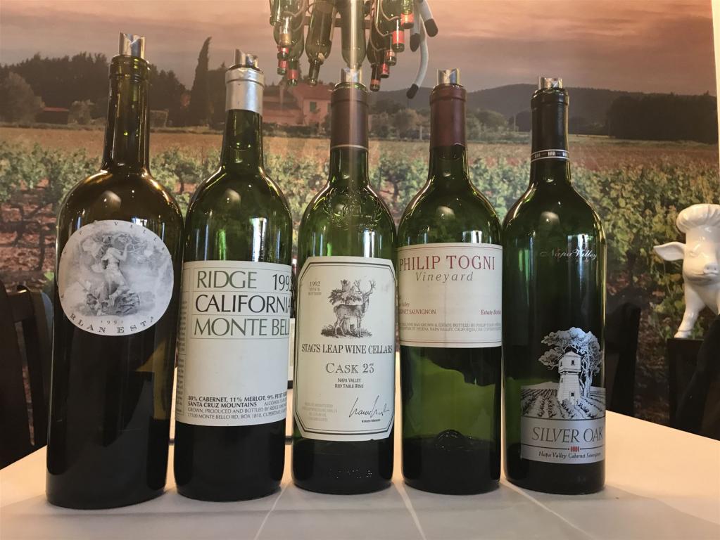 1992 ist ebenfalls ein sehr gutes Kalifornienjahr, wirkt aber insgesamt immer etwas unter 1991. Immer noch jugendlich frisch wirkte der 1992 Harlan, der sicherlich noch 10 Jahre vor sich hat. Ein sehr balancierter, stimmiger Wein mit einer Stilistik, die sich eher an Bordeaux orientiert. Leider aus unserer Flasche hier mit leichtem Kork, was eine Bewertung schwierig macht. Die vielen, bisher (zuletzt 2017) getrunkenen Flaschen lagen alle bei WT96-97. 1992 Ridge Monte Bello gefiel ausnehmend gut, war aber ein Musterbeispiel für den Jahrgang. Er wirkte auf hohem Niveau wie eine etwas kleinere Version des 1991ers – WT96. Schwierig zu verkosten mit etwas dumpfer, minziger Nase der 1992 Stag´s Leap Cask 23. Auch am Gaumen wirkte der bei aller Klasse etwas unausgewogen – WT91. Ein grandioser, immer noch blutjunger, klassischer Old School Kalifornier war der 1992 Togni mit großartiger Struktur, sehr druckvoller Aromatik und sicher spannender, langer Zukunft – WT96+. Im besten Sinne fröhlich wirkte der 1992 Silver Oak Napa Valley mit der typischen Dillnote, so fein und elegant mit betörender Frucht – WT94.