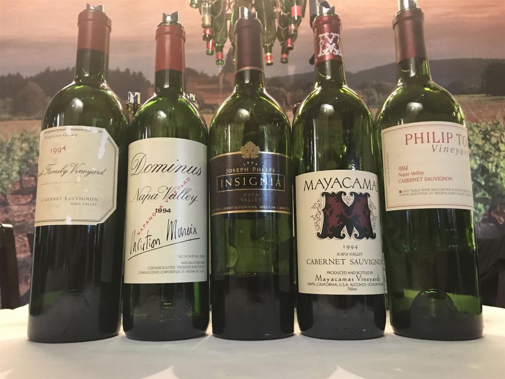 Im letzten Flight kamen dann noch 5 Weine aus dem großen, langlebigen Kalifornienjahrgang 1994 ins Glas. Ratlos machte erst der 1994 Bryant Familiy Vineyard. Wo war die geile, üppige Frucht dieses früheren 100Punkte Weines geblieben, der aber schon immer eine hervorragende, Pauillac-ähnliche Struktur besaß? Diese fantastische Struktur und enorme Substanz waren immer noch da. Dieser Bryant wechselt hoffentlich ins Charakterfach und wird nach einer „Schaffenspause“ wieder deutlich zulegen – WT95(+?). Der 1994 Dominus ist einer der größten Weine, die je auf diesem Gut erzeugt wurden, ein großer Pauillac mit kalifornischer Frucht, ledrig, leicht animalisch, enorm druckvoll, kräftig und lang. In seiner Fruchtphase war dieser wein praktisch auf Augenhöhe mit 1994 Harlan. Je nach Lagerung hat er sich danach immer etwas offener oder verschlossener gezeigt. Aus dieser Flasche hier war er etwas offner, aber immer noch mit deutlichem Tanningerüst. Ein Wein für sicher noch 2-3 Dekaden, der durchaus noch zulegen und die WT99der Fruchthase wieder erreichen oder sogar übertreffen kann – WT98. Auch der 1994 Phelps Insignia zeigte sich hier in bestechender Form und immer noch so jung. Superbe, verschwenderische Frucht, Cassis pur, feine Minze, Tabak, Leder und genug Tannine für eine längere Zukunft. Das hier war die vielleicht beste Flasche, die ich bisher von diesem High Level Spaßwein hatte – WT97. Erstaunlich gut hat sich auch der im letzten Herbst auf unserer Mayacamas Vertikale noch so verschlossene 1994 Mayacamas entwickelt. Aus dieser Flasche hier konnte er mit guter Struktur und kühler Mountain-Frucht punkten. Hat noch viel Potential für eine längere Entwicklung – WT94. Ein echtes Potentialmonster mit gewaltiger, langer Zukunft, sehr dicht, sehr kräftig und mit Mega-Potential ist 1994 Togni, der wohl erst in 10 Jahren alles zeigt. Hier in dieser Probe war das alles spürbar, doch verdarb ein immer stärker spürbar werdender Kork den Genuss.