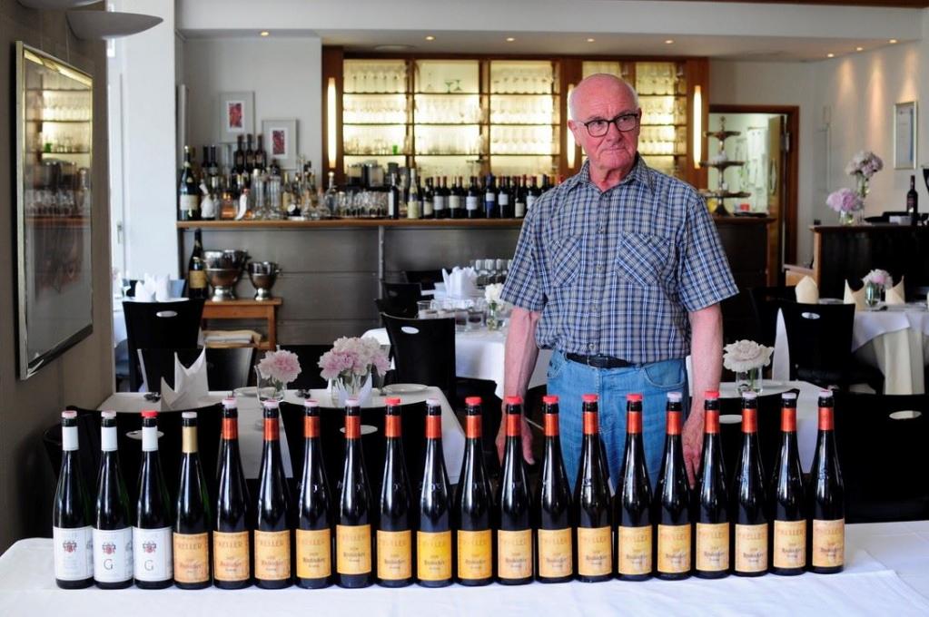 Was für eine herrliche Idee. Hans Onstein (unten im Bild), großer Keller Fan und Sammler, schenkte Julia und Klaus-Peter Keller zum 20. Hochzeitstag eine 20-Jahre-Vertikale des Hubacker GG´s und seiner trockenen Vorläufer. Ich durfte dabei sein, als just an diesem 20. Hochzeitstag auf der lauschigen Terrasse des Landhaus Dubs diese Weine in fröhlicher, aber sehr kenntnisreicher Runde verkostet wurden.