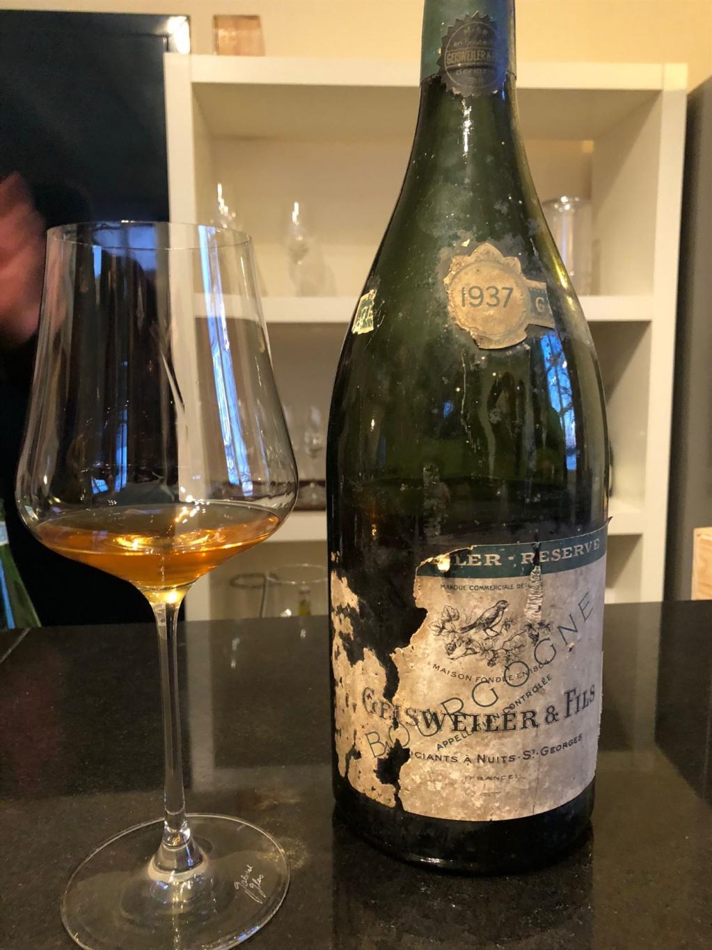 Volles Risiko bin ich in diesem Jahr beim Apero gegangen. Auch wenn es eine Magnum war, würden Sie sich an einen 81jährigen, einfachen Bourgogne Blanc herantrauen? Aber die damaligen Weine haben nicht nur besser gealtert. Da die Winzer zur derzeit froh waren, wenn sie überhaupt etwas verkaufen konnten, kann das, was damals hier in diese Magnum 1937 Bourgogne Blanc Reserve von Geisweiler & Fils kam, durchaus sehr hochwertig gewesen sein. Immer noch brilliantes, tiefes Goldgelb, noch soviel Frische zeigend, Trockenfrüchte und würziger, nussiger Schmelz, stand selbst nach fünf weiteren Stunden aus der Flasche noch wie eine Eins.
