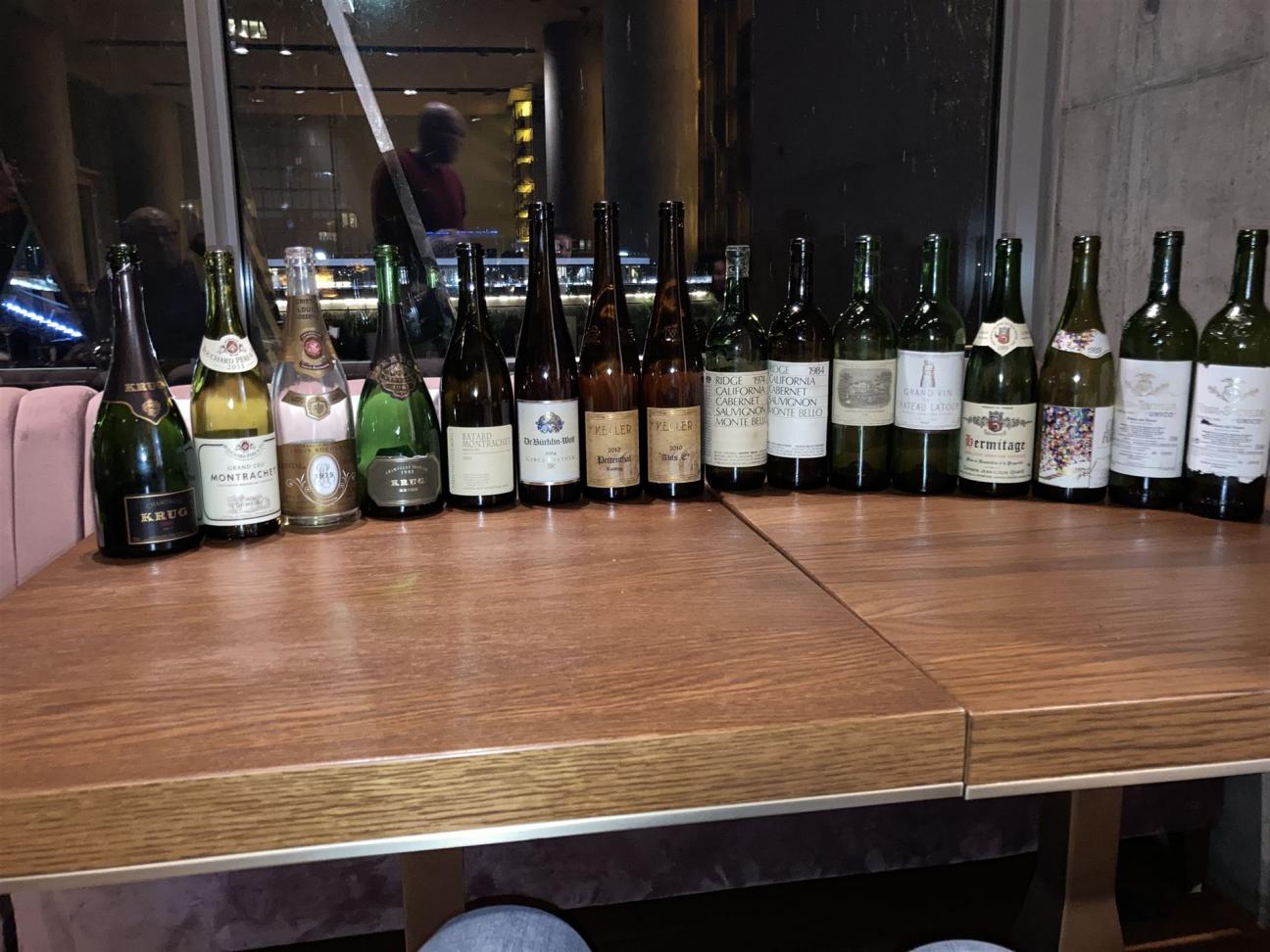Ein Traumflight danach zwei gereifte Champagner aus perfekten Flaschen, natürlich dekantiert. Tiefes Goldgelb, aber auch noch lebhaftes Mousseux zeigte der 1979 Roederer Cristal. Der war bei aller Zugänglichkeit noch so frisch mit cremiger Textur, mit Apfel, Zitrus und Toffee, sehr elegant und fein, einfach der große Finessenmeister – WT97. Etwas tiefer die Farbe des sehr kräftigen, im besten Sinne kernigen 1982 Krug Vintage Champagner, auch der noch mit sehr guter Perlage und toller Struktur. Verwöhnte mit gerösteten Haselnüssen, dicker Bauernbrotkruste und war sehr komplex und lang. Von den vielen Flaschen dieses großen Champagners, die ich bisher getrunken habe (1982 ist mein Hochzeitsjahr), war das eine der allerbesten und qualitativ auf einem Level mit Clos des Mesnils – WT98.