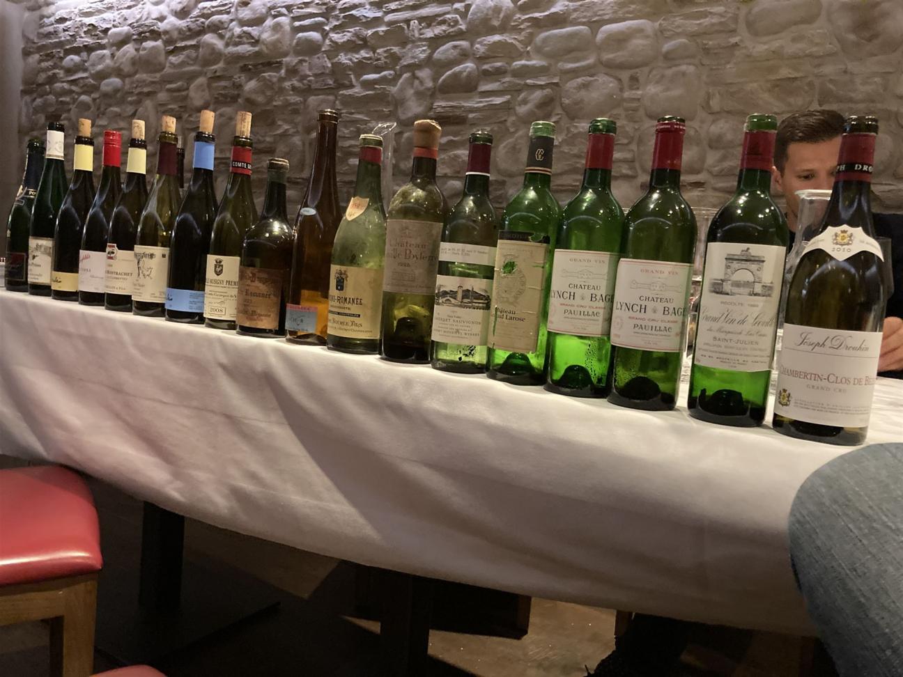 Und dann ging es ins eingemachte. Spannung war angesagt, als der dekantierte 1923 Tâche Romanée von Chevillot ins Glas kam. Dieser Wein aus der Zeit, bevor La Tâche 1933 eine Monopollage von DRC wurde, hat einen Ruf wie Donnerhall, gerade auch in der Negociant-Abfüllung von Chevillot, wird aber auch oft gefälscht. 2013 hatte ich bei Uwe Bende mit dem perfekten 29er das 100 Punkte Erlebnis einer perfekten, echten 100 Punkte Flasche. Und jetzt und hier wiederholte sich das aus dem guten Burgunderjahr 1923. Mit dezent ätherisch-minziger Note und nur einem Hauch Möbelpolitur, der aber schnell verflog, und etwas Leder kam der Wein ins Glas. So elegant, so fein, geradezu leichtfüßig, und doch mit Druck, zeigte immer neue Facetten. Mit der Zeit kam sogar noch etwas rotbeerige Frucht dazu. Nein, dieser 97jährige Senior starb nicht im Glas, der baute sogar noch aus, war dabei so unglaublich harmonisch und stimmig, und die gute Säure verlieh ihm das Gefühl von Frische. Reifer Burgunder vom Allerfeinsten war dieser Tâche, ein einmaliges Erlebnis und klare WT100. Eine große Überraschung war auch der 1990 Gantenbein Blauburgunder Der war damals als letzter (von 1991 gab es zwei Versionen Stahl und Holzfass, ab 1992 wurde Holz Standard) komplett im Stahltank ausgebaut worden. Dieser Blauburgunder war altersfrei und erstaunlich kräftig und druckvoll, aber auch sehr feinfruchtig und elegant. Ich hatte diesen Wein zuletzt 2009 auf dem Gut in einer großen Gantenbein-Vertikale. Damals gefiel er mir schon gut, hat sich aber unglaublich weiterentwickelt. Das waren hier locker WT95 und eine perfekte Antwort auf die Frage „Und wie altert eigentlich Gantenbein?“. Deutlich mehr hatte ich vom 1959 Vosne Romanée Les Malconsorts von Pierre Bourré erwartet. Eigentlich zeigen die 1959er Burgunder noch so viel Jugend und traumhafte Frucht. Aber hier hat wohl, was bei jedem Wein passieren kann, der Korken etwas Luft gezogen, was den Wein über die Zeit oxidieren ließ. Man spürte die ursprüngliche Klasse, aber viel mehr auch nicht.