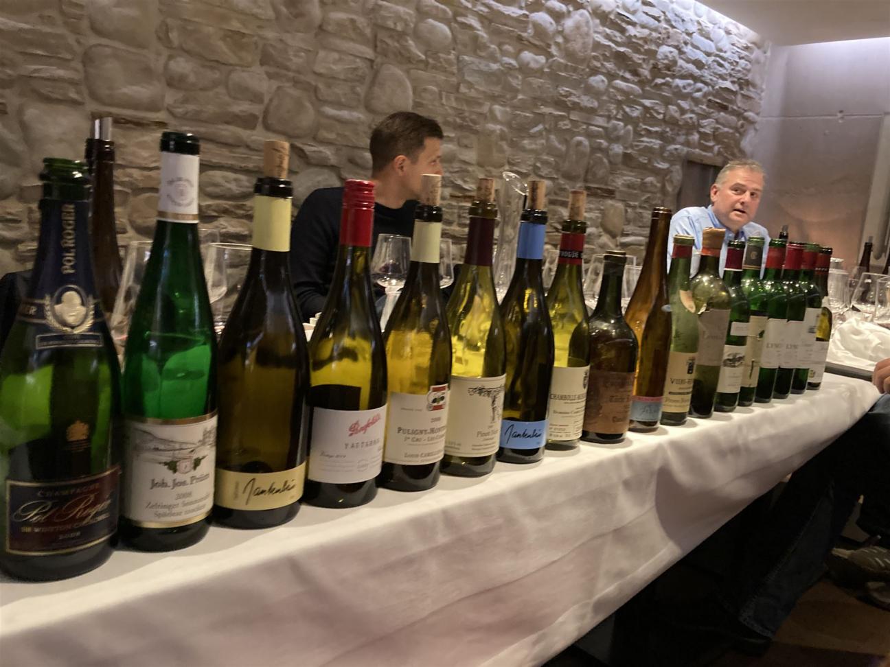 In feiner Achterrunde haben wir uns diesmal getroffen, bestens betreut von Stefan Jost, der den Keller kennt wie kein anderer und alle feine perfekt ins Glas brachte. Als Apero starteten wir in einem der Keller mit 2008 Paul Roger Cuvée Winston Churchill, der wieder mit Rasse, Klasse, Fülle und feinem Nerv überzeugte, einer der besten dieser Cuvée bisher mit viel Potential. Gerade erst vor wenigen Tagen bei und mit Michelangelo Saitta getrunken, aber den kann man nicht oft genug ins Glas bekommen. Superbe Frucht, Grüne Äpfel, Limone, aber auch florale Noten, ein großer Korb frischen Backwerks, geröstete Haselnüsse, cremige Textur, feine Opulenz und eine ungeheure Trinkigkeit. Da scheiden sich jetzt die Geister. Den Filigranartisten graust es ob dieser Fülle, die Hedonisten bestellen gleich eine Magnum und lassen die zweite schon mal einkühlen. Trotz dieser Trinkigkeit lohnt es, von diesem Champagner, der viel Potential besitzt, ein paar Flaschen länger wegzulegen - WT96+. Kleiner Tipp: dekantieren und/oder große Gläser, es lohnt. Als Rarität folgte darauf einer der wenigen trockenen Prüm-Weine, eine 2008 Zeltinger Sonnenuhr Spätlese trocken. Ein eleganter, filigraner Wein mit wunderbarer Schiefermineralität, tänzelnd am Gaumen, die Prümsche Leichtigkeit des Seins in einer faszinierenden, trockenen Variante, die hier aber schon einen leichten Reifeton zeigte – WT93.