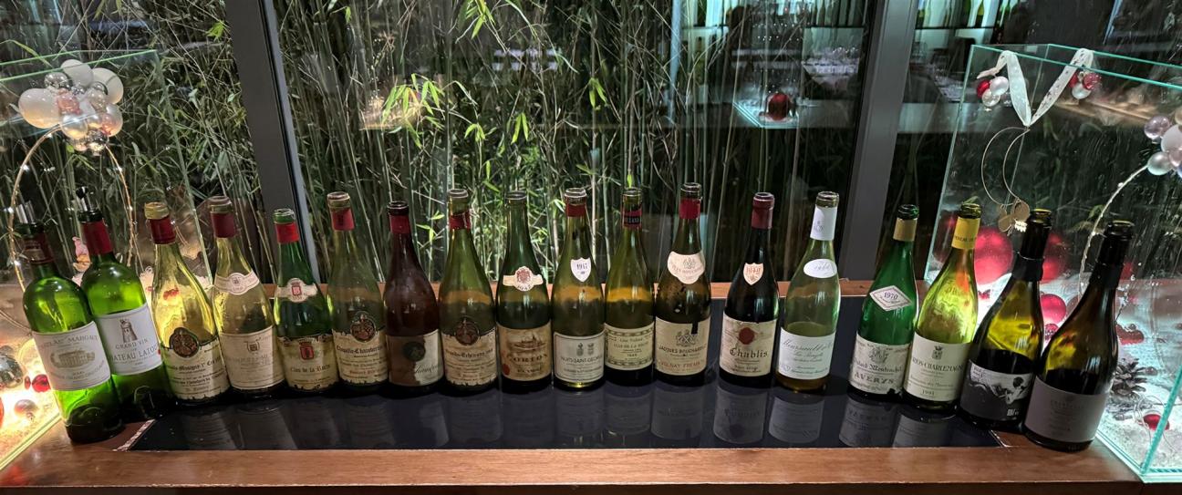 Gleich im ersten Flight zwei perfekt gereifte, Weiße Burgunder, ein großartiger, altersfreier 1991 Corton Charlemagne von Bonneau du Martray und ein immer noch so vitaler 1970 Batard Montrachet in einer Avery-Abfüllung. Da hätte sicher auch der 1966 Meursault Poruzots von Leroy gut mitgespielt, der leider nach furiosem Start schnell einen üblen Kork entwickelte. Absolutes Highlight und die Überraschung der Probe war ein noch so unfassbar lebhafter, präziser Chablis in einer Bordelaiser Händlerabfüllung von Roger Lafage, aus einer perfekten Flasche mit sehr gutem Füllstand und Originalkork schlichtweg Perfektion, und das mit 76 Jahren.