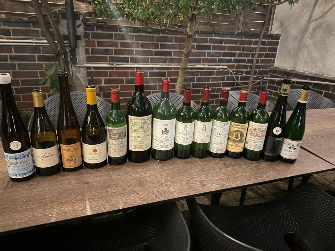 Wir starteten mit 2020 Monte Vacano von Robert Weil. Der war sehr dicht, kräftig und intensiv, aber auch sehr finessig und elegant mit Weißem Pfirsich, toller Mineralität und großartiger Struktur. Die reife, aber kräftige Säure übereckte den ersten, feinen Schmelz – WT96+. Weiter ging es mit dem raren 2022 Lauren Chardonnay von Aubert. Mit Kraft, schmelziger Fülle , Honigmelone, Ananas, wenig Säure, etwas Vanille vom Holz war dieser enorm druckvolle Wein so eine Batard Montrachet aus Kalifornien – WT97. Zurück ins Riesling Land ging es mit der großartigen 2010 Abtserde GG von Keller. War aus dieser Flasche hier etwas reifer, als sich sie kenne, überzeugte aber mit saftiger Frucht und Fülle, guter, reifer Säure, viel Schmelz, sehr guter Struktur und immer noch enormer Kraft – WT97. Dann kam der sehr rare 2021 Point Rouge Chardonnay von Peter Michael. Der zeigte sich trotz mehr als heftiger 15,6% Alkohol erstaunlich schlank und balanciert mit feiner Bittermandelnote. Das war ein Kraftbündel mit gewaltiger Struktur, das sich leider im Glas verschloss. Da ist wohl längere Wartezeit angesagt – WT94+.