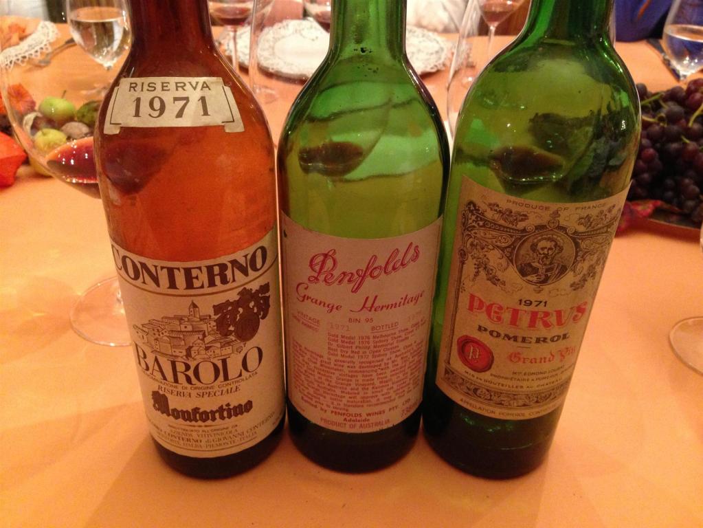 Irgendwann musste doch unserem Gastgeber mal die Puste ausgehen. Doch der setzte uns jetzt einen 1971 Barolo Riserva Speciale Monfortino von Giacomo Conterno vor. Was für ein verrückter, erstaunlich offener Barolo heller, leicht bräunlicher, aber voll intakter Farbe (alte Monfortinos neigen zu Farbausfällung, und dann sind sie hin), mit süßer Frucht, mit Rosenblätter, Teer, Leder, Trüffeln, Unterholz und einer frischen Mentholnote, ist auch am Gaumen sehr spannend und komplex mit ewiger Länge – WT98. Diese Legende hätte es verdient, sich länger damit zu beschäftigen, wie vielleicht jeder andere Wein auch. Solo hätte ich vielleicht schon wieder die WT100 gezückt (langsam kam ich mir fast blöd vor), aber im Glas daneben stand der legendäre 1971 Penfolds Grange in absolut perfekter Form, der erschlug mit seiner irren Aromatik, seiner perfekten, traumhaften Struktur und seiner Süße einfach alles, was um ihn drum herum stand. Auch das wieder ein Erlebnis der Extraklasse und sicher WT100. Damit hatte ich gleich doppeltes Glück, denn in der großen Grange-Vertikale ein paar Wochen später hatte ausgerechnet dieser, vielleicht größte Grange aller Zeiten einen Fehler. Schön, wenn man ihn dann noch gedanklich in perfekter Form auf der Zunge hat.
