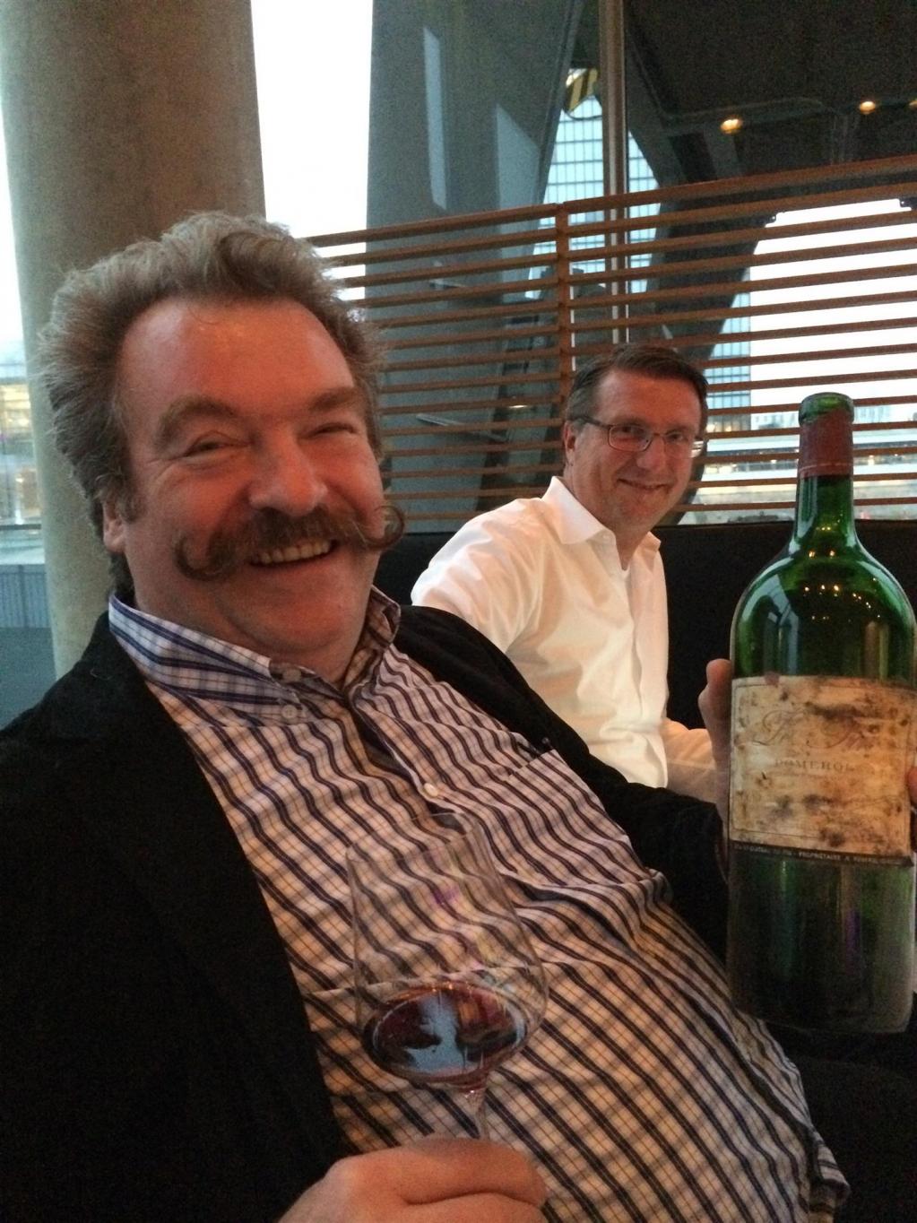 Zwei große, rote 61er waren jetzt angesagt. 1961 Angelus hatte eine etwas trübe, leicht bräunliche Farbe und wirkte insgesamt reif in der Anmutung. Doch zeigte die etwas rustikale Nase auch noch pflaumige Frucht, Leder und einen Hauch Lakritz. Besser der Gaumen mit Süße, Kraft und Fülle – WT94. Daneben die 1961 Pichon Comtesse mit einer absolut geilen Nase, die sich am nächsten Tag bei Elke Drescher in den beiden Flaschen 1961 Palmer wiederfand, sehr generös und schmelzig, aber auch leicht animalisch mit Leder und Pferdestall pur, am Gaumen hoch elegant, eben ganz eine große Comtesse, im positiven Sinne schlank mit feiner Süße und toller Länge – WT96.