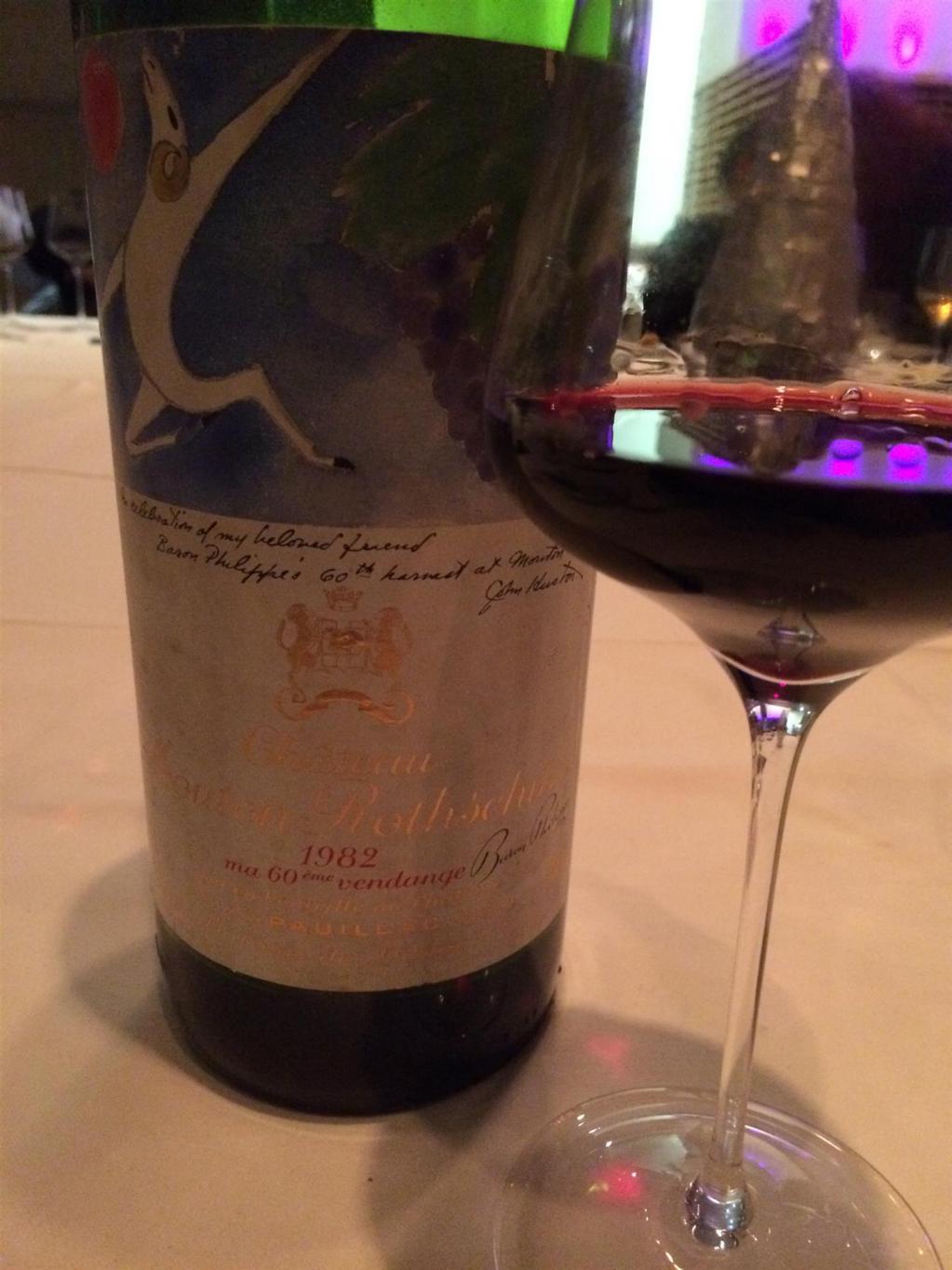 Und dann kam wieder ein Hammerflight. Zwei edle Spender hatten 1982 Mouton Rothschild und 2000 Mouton Rothschild als Magnum locker gemacht. Von 1982 Mouton Rothschild hatte Moutons alter Kellermeister, Raoul Blondin, einmal gesagt, dass er aus dem Fass genauso roch und schmeckte, wie seinerzeit der legendäre 1945 Mouton. Und ähnlich wie der 45er, der sehr lange zur Reife brauchte, gilt das auch für den 82er. Der war auch aus dieser Magnum noch so jung, so ungestüm, ein irres, aber überwältigendes Konzentrat, das aber absolut stimmig wirkte, natürlich mit der Mouton-typischen Aromatik von Cassis, Leder, Bleistift und Minze. Da gab es in dieser brillianten Form nur eine mögliche Bewertung: WT100. Auch hier gilt wie beim 82er Las Cases, dass unser immenses Flaschenglück nicht für jede Flasche 82 Mouton gelten muss. Wie gerne hätte ich da den 2000er gegen getrunken, der bei unserer letztjährigen Probe so eine hervorragende Figur machte. Beim Dekantieren war das noch ein grandioser Stoff, der aber mit der Zeit in der Karaffe einen üblen Kork entwickelte. Schade.