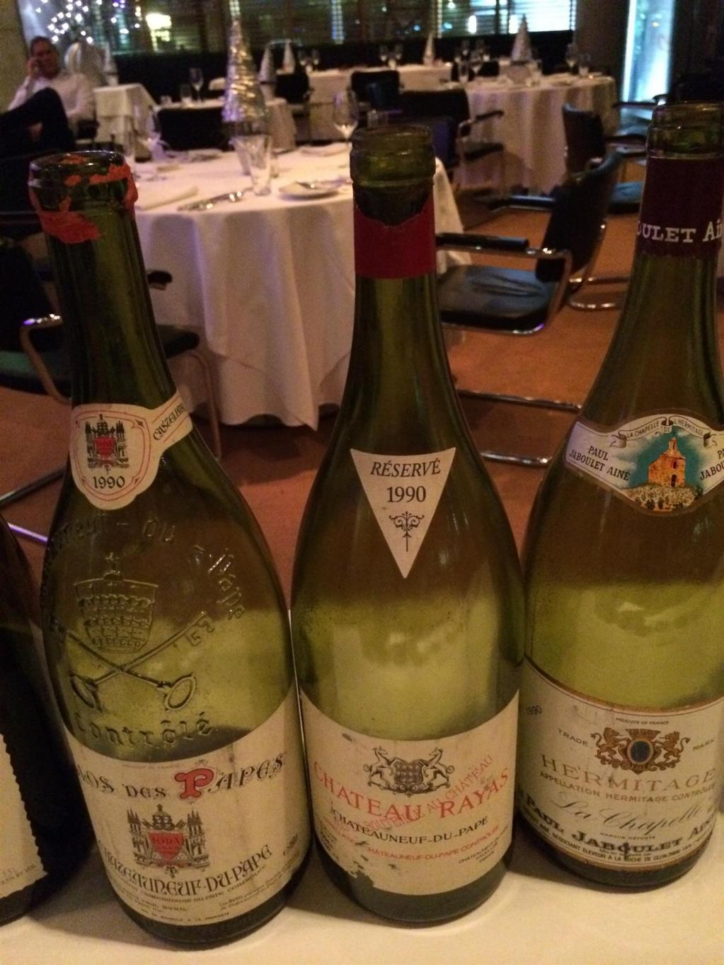 Jetzt war ein Rhone-Feuerwerk angesagt. Der sehr würzige, explosive, druckvolle 1990 Chateau Rayas war so süß, so sexy, als wollte er sich in Pomerol bewerben. Manchem am Tisch war das schon zu viel des Guten an wiederum dekadenter Fülle, ich fand es mit dieser explosiven, vielschichtigen Aromatik schlichtweg atemberaubend, und diese geile Erdbeernase erinnerte an die allersüßesten Früchte des letzten Sommers – WT100. Perfektion auch bei 1990 Hermitage La Chapelle von Jaboulet Ainé, den ich schon oft trinken durfte, aber das war eine der bisher besten Flaschen überhaupt. So ein irres, junges konzentriertes Mörderteil, schlichtweg atemberaubend – WT100. Kein Wunder, dass meine Notizen immer kürzer wurden. Mir gingen langsam die Superlative aus. Ich schwebte im siebten Rotweinhimmel und es ging mir schlichtweg wie allen anderen saugut.