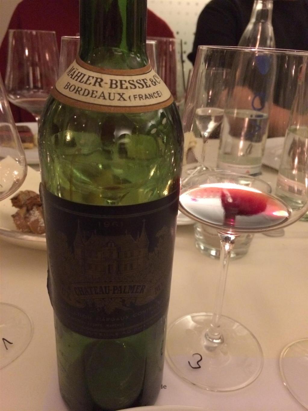 Was für ein Traum dieser 1955 Palmer, junge, rotbeerige Frucht, Süße, burgundische Pracht und Fülle, Eleganz, ein großer, perfekt gereifter Palmer, wie man sich ihn wünscht – WT96. Etwas Pech hatten wir bei 1959 Palmer, der trotz perfekter Optik einen deutlich Schlag weg hatte. Eigentlich also hin, aber woran erkennt man einen richtig großen Wein? Daran, dass er sich aufbäumt und noch mal alles gibt. Das tat dieser 59er mit gewaltiger Süße. Man spürte das enorme Potential für deutlich mehr als die WT92+ dieser Flasche. Und woran erkennt man eine große Gastgeberin? Daran, dass sie nichts dem Zufall überlässt. Oft ist es ja eine ganz bestimmte Flasche, auf die sich die Probenteilnehmer ganz besonders freuen, eben diese eine Legende, die dann aber auch sitzen muss. Ich erinnere mich noch gut an eine Cheval Blanc Probe bei Elke vor nicht allzu langer Zeit. Da war der lieben Elke der 47er nicht perfekt genug. Und was machte sie? Verschwand im Keller und kam mit einer weiteren, diesmal absolut perfekten Flasche wieder. Und was macht Elke, wenn sie ihren Keller nicht dabei hat? Vorsorgen. Klar waren wir alle scharf auf die Legende 1961 Palmer. Und von dieser Legende hatte Elke nicht nur zwei Flaschen mit, sie machte sie auch beide auf! Alleine dafür hätten wir sie alle knutschen können. Einmal 61 Palmer trinken ist ja schon ein Erlebnis, aber gleich zweimal hintereinander aus sehr guten Flaschen, das ist schon megeklasse. Noch so präsent und lebendig war dieser Wein mit einer Traumnase, die an die geniale 61 Pichon Comtesse Magnum vom Vortag erinnerte. Burgundische Eleganz am Gaumen, aber auch enorme Kraft und Dramatik, vor allem in der zweiten Flasche, die noch enorme Tannine zeigte. Aus guten Flaschen wie diesen hat dieser druckvolle Palmer seine Zukunft noch vor sich – WT97+ und WT96+.
