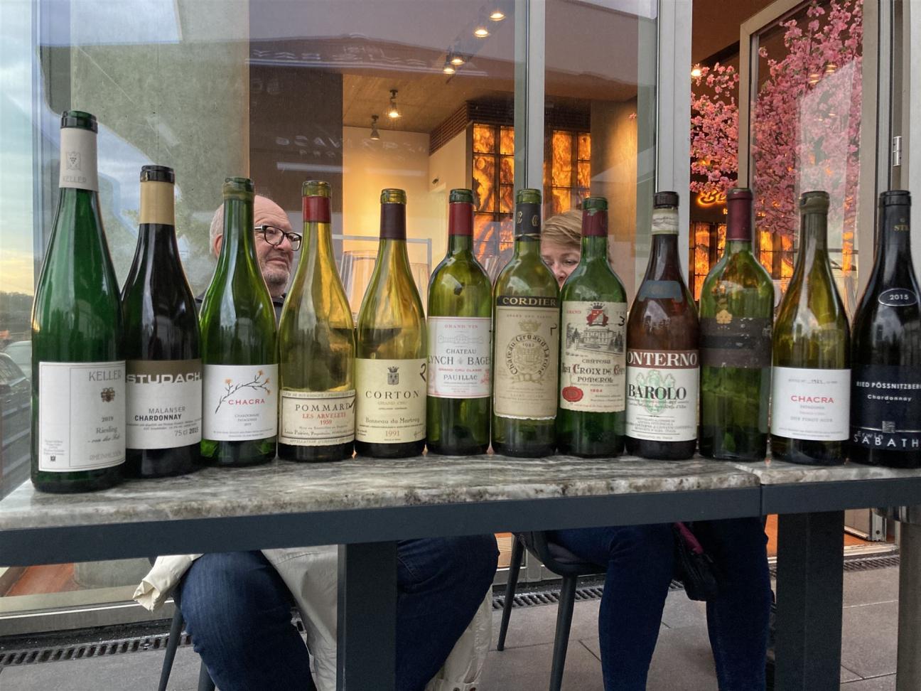 Ein Prachtstück, dieser 2019 von der Fels von Keller, blutjung und frischmit präziser, animierender Frucht, guter Mineralität und rassiger, intensiver Säure, sollte gut altern – WT93. Schlank und rassig der 2019 Chacra Chardonnay mit ungeheurer Präzision, sehr mineralisch, da merkt man die Handschrift des burgundischen Starwinzers Roulot. Braucht viel Zeit und Luft, dürfte hervorragend altern – WT96+. Jugendlich, schlank und präzise der Studach Chardonnay mit feiner, gelber Frucht, burgundischen Konturen und guter Säure – WT95. Ein Musterbeispiel für diesen großen Burgunder Jahrgang der 1959 Pommard Les Arvelets von Louis Poirier. Perfekt gereift mit pikanter, animierender, rotbeeriger Frucht, voller Finesse, so elegant und schmelzig mit erster, generöser Süße, sehr balanciert mit schöner Länge – WT97. Ein gutes Beispiel für die Klasse und Alterungsfähigkeit der Weißweine aus der Vor-Premoxzeit war der 1991 Corton Charlemagne von Bonneau du Martray. Schlank in der Statur, aber kräftig und druckvoll, maskulin mit guter Säure und Frische– WT93. Mit zwei Klassikern, beide aus bester Lagerung und noch sehr jung wirkend, ging es weiter. Sehr elegant und fein mit präziser Cassis Frucht, Minze schönem Schmelz der 1989 Lynch Bages mit noch gewaltigem Potential – WT96+. Noch etwas drüber, aber stückweit verschlossen, der maskuline 1982 Gruaud Larose, der viel Luft brauchte – WT97+. Aus Holgers Geburtsjahr hatte ich einen 1964 Croix de Gay mitgebracht. Diesem feinen, noch so frischen und minzigen Pomerol mit seiner wohldosierten Fülle merkte man die 56 Jahre ebenso wenig an wie dem Holger – WT95. So unglaublich kräftig, druckvoll und lang mit gewaltigem Potential der 2004 Barolo Casicina Francia von Aldo Conterno – WT96+. In bestechender Form und immer noch so jung mit superber, verschwenderischer Frucht, Cassis pur, feiner Minze, Tabak, Leder und genug Tannine für eine längere Zukunft der 1994 Phelps Insignia als High Level Spaßwein – WT97. Der 2018 Chacra Pinot Noir Trenta y Dos zeigte sich als grandioser, großartiger Pinot mit traumhafter Frucht, irrer Tiefe und Länge – WT95+.
