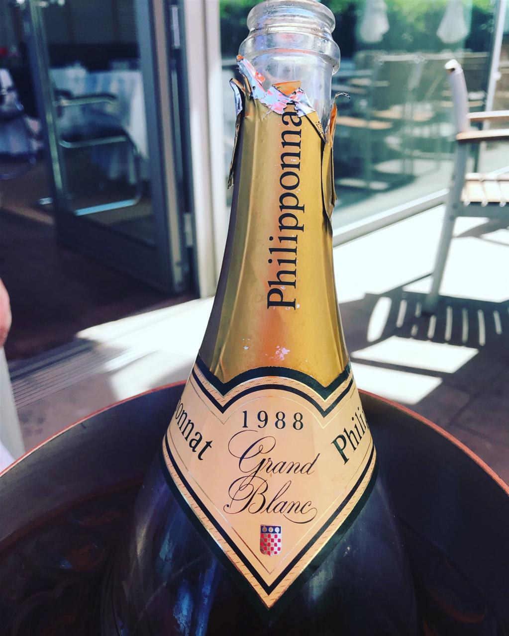 Perfekter, erfrischender und animierender Start aus diesem großen Champagnerjahrgang der 1988 Philipponnat Grand Blanc aus der Magnum. Die 30 Jahre haben diesem großen Jahrgangschampagner gut getan, der gut gereift, aber ohne Alterstöne mit goldgelber Farbe und sehr gutem Mousseux ins große(!) Glas kam. Dort legte er mit etwas Zeit und Luft ungemein zu. So spannend, kräftig und voller Leben, wurde immer nussiger mit frischem Brioche und dicker Brotkruste, sehr lang und komplex am Gaumen – WT96. Sehr elegant mit cremiger Textur und feiner Zitrusfrucht der gut (an)gereifte 2012 Siefersheimer Heerkretz GG von Wagner-Stempel – WT93. Auf manche Weine muss man einfach warten, so z.B. auf die großen Reserves aus der Wachau und den umliegenden Appelationen, die in ihrer Jugend einfach zu süß und zu plump sind. Mit würziger, cremiger, pfeffriger Fülle und feinem Schmelz fing der 2006 Grüner Veltliner Rosenberg Reserve von Ott jetzt aus der Magnum an, so richtig Spaß zu machen. Dürfte noch eine lange Zukunft haben – WT95. Als absolute Risikoflasche kam dann ein 1978 Dole du Valais, ein Rathauswein der St. Georgskellerei Sursee, aus der Magnum ins Glas. Der war noch erstaunlich trinkbar mit rotbeeriger Frucht und feiner Süße – WT88. Enormes Potential zeigte der kräftige, immer noch jugendliche 2001 Romanés St. Vivant von Charles de Vallière, der es verdient gehabt hätte, dekantiert zu werden. Aber bei 37 Grad war uns das zu aufwendig, denn die Magnum passte so prima in den Eiskübel. Schade, denn das letzte Drittel der Flasche zeigte mit wunderschöner, feiner Frucht deutlich mehr Eleganz und Finesse – WT94. Den vorläufigen Abschluss bildete (es kamen immer wieder noch irgendwelche 1tel auf den Tisch, meist jung und frisch) ein immer noch so junger, druckvoller burgundischer Traum mit Pracht und Fülle, aber auch mit tänzerischer, seidiger Eleganz der 2004 Gantenbein Pinot Noir so perfekt balanciert und stimmig – WT96.