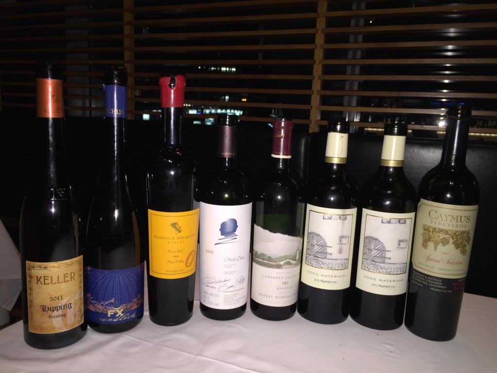 Was mit Hipping anfing wurde immer hipper. Auf gleichem Niveau wie der Hipping, wenn auch mit völlig anderer Stilistik, der reife 2000 Riesling Unendlich von FX Pichler, der mit seiner üppigen Fülle, dem reifen Steinobst und der würzigen Mineralität sehr kraftvoll, aber auch balanciert auftrat – WT96. Bevor es dann richtig rot los ging, leider erst mal eine bedauerliche Pleite. Die 2007 Behrens & Hitchcock Cuvée Lola hatte immer noch eine junge Farbe und eine tolle Statur, aber leider auch Kork. Schade, ich hatte mich so darauf gefreut, im Berens einen Behrens zu trinken. Schade, da geh ich jetzt wieder auf die Suche. Traumhaft balanciert und elegant danach der schmelzige 1995 Opus One, stilistisch ein großer Bordeaux mit süßer, kalifornischer Frucht – WT95. Immer noch voll da mit feiner, beeriger Frucht der minzige 1987 Mondavi Cabernet Sauvignon Reserve, einer dieser wunderbaren, klassischen Kalifornier aus den 80er Jahren – WT95. Besser als jedes Auto dann die beiden Maybachs aus 2005 und 2006. Das waren beides Kalifornier der moderneren Art mit satter Frucht und viel Dampf, die aber trotzdem erstaunlich elegant wirkten und mit ihrer Mischung aus Cassis, Graphit und Leder auch etwas von einem jungen Mouton hatten. Der 2005 Maybach Marterium war der frischere, betörendere, der 2006 Maybach Marterium der dichtere, kräftigere, beide locker auf WT96 und jede Suche wert. Hedonismus pur der mit seiner süßen Frucht sehr sexy wirkende, gefällige 2001 Caymus Special Select – WT94. Klar, der Caymus hatte nicht die Struktur und die Klasse der Maybachs, aber er war ein Spaßwein par Excellence auf durchaus hohem Niveau.