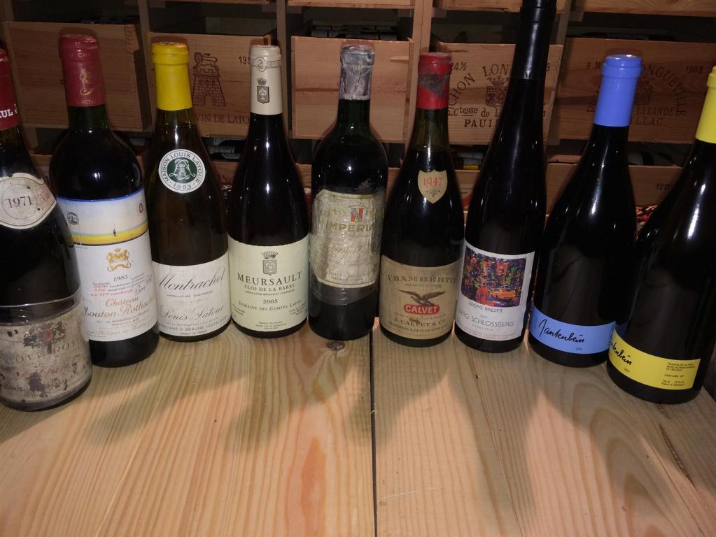 In die rote Abteilung starteten wir mit einem immer noch sehr vitalen, animalischen, kräftigen 1971 Côte Rotie Les Jumelles von Jaboulet-Ainé. Der hatte nicht nur viel altes Sattelleder, sondern auch das komplette Pferd dazu, erinnerte an die dampfenden Kaltblütler, wenn sie mit viel Lust am Laufen im Rosegtal die Schlitten durch die Winterlandschaft nach oben ziehen. Dazu natürlich dazu natürlich ein dickes Steak vom und samt Holzkohlengrill, einfach nördliche Rhone und Côte Rotie pur – WT96. Diese enorme Vitalität ließ leider der 1947 Chambertin von Calvet vermissen. Der war nicht kaputt, nicht fehlerhaft, einfach trotz guten Flaschenzustandes nur verdammt reif und schon ziemlich oxidativ, vor allem in der Nase – WT82. Wie jung und gut der Jahrgang noch sein kann, das zeigte nicht nur am Tisch Jörg Müller, sondern aus seinem Geburtsjahr auch der 1947 Imperial von CVNE mit erstaunlicher Struktur, Kraft und Länge – WT94. Noch einen Tick drüber der sehe elegante, hoch aromatische 1983 Mouton Rothschild, der immer besser wird. Wie so viele der großen, immer deutlich unterschätzten 83er (Cheval, Latour, La Mission) ist der zwar reif, baut aber nicht ab, sondern legt immer mehr zu – WT95. Vielleicht sollte ich nicht soviel darüber schreiben, sondern mehr nachkaufen. Im Vergleich zu den jüngeren Moutons, die diese Klasse erst mal erreichen müssen, ist der geradezu geschenkt. Ein burgundischer Traum als Abschluss der roten Serie der seidig-weiche, aber sehr nachhaltige 2008 Gantenbein Pinot Noir – WT94.