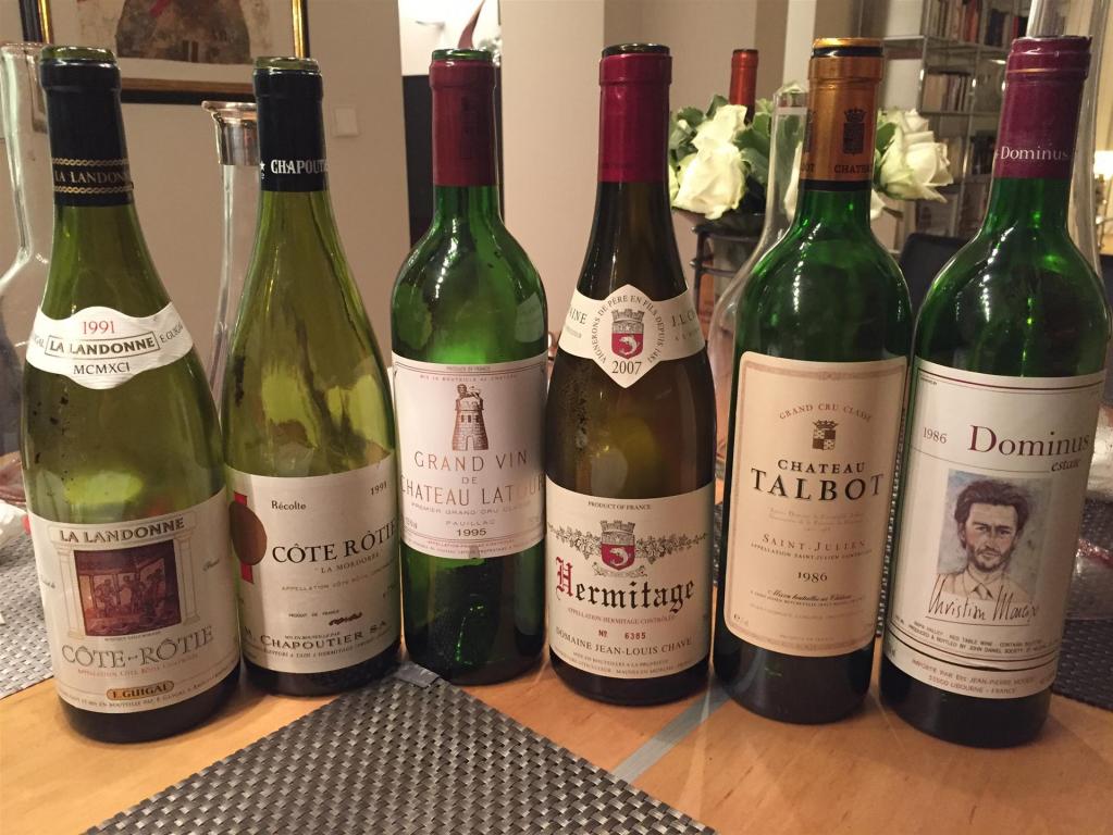 Spielerisch-elegant, sehr gefällig und mit der knackigen 10er Säure als Einstieg das 2010 Kirchspiel GG von Keller – WT93. Der 1991 La Landonne von Guigal zeigte sich sehr kraftvoll, trüffelig und edel-rustikal – WT98. Der lange Zeit verschlossene Côte Rotie Mordorée von Chapoutier zeigte sich an diesem Abend deutlich offener und erinnerte in seiner opulenten Würze an große La Moulines – WT99. Immer noch so jung mit massiven Tanninen der 1995 Latour, der mit präziser Frucht und großartiger Struktur schon mal einen guten Ausblick auf das gab, was da in 10+ Jahren mal entstehen dürfte – WT95+. Der 2007 Hermitage von Chave war ein gewaltiges Konzentrat, das aber erstaunlich offen, würzig und süß mit für Chave untypischer Opulenz wirkte – WT97. Und dann war da noch ein spannender Vergleich zwischen zwei sehr gelungenen 86ern. Der zupackende, ledrige 1986 Talbot mit guter Frucht und viel Zedernholz zeigte sich noch so frisch, so jung mit großartiger Struktur und immer noch viel Zukunft – WT96. Auch der 1986 Dominus wart immer noch so irre jung wirkend mit perfekter Struktur, Kraft und Länge, ein großer, klassischer Dominus mit noch langer Zukunft – WT95.