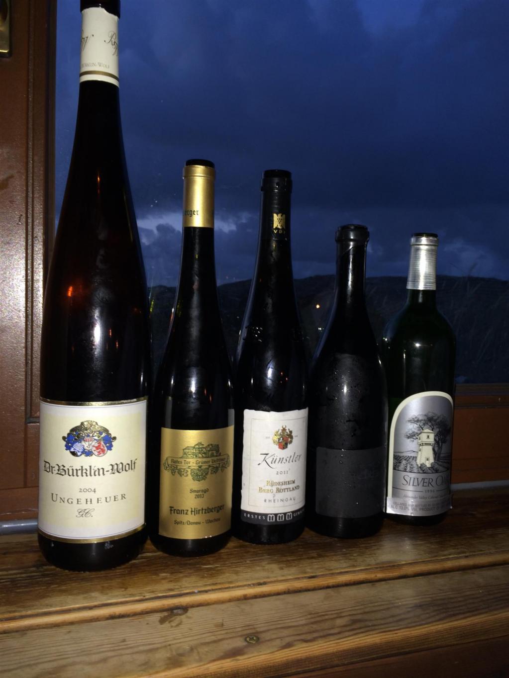 Wir hatten natürlich eine Nichttrinkerin mit Kapitänspatent an Bord, sicher ist sicher. So konnten wir getrost in Gregors Bootskeller greifen. Der Genuss dieses sehr mineralischen, ausdrucksstarken 2011 Berg Rottland von Künstler, bei dem man meint, einen darein geriebenen Felsen vom Hausberg Pilatus mit schmecken zu können, das hat schon was. Und wenn man diesen Wein als „Himmel“ bezeichnete, wäre es jetzt bei Künstler schwer, sich zwischen Himmel und Hölle zu entscheiden. Ein Riese, dieser Berg Rottland, mit gewaltigem Potential – WT95+. Unser mittägliches Ziel war die Obermatt mit ihren legendären Älplermagronen. Aus der Karte der Obermatt starteten wir mit einem 2009 Alpha Omega, mit dem ich überhaupt nicht zurande kam. Sehr vanillig, holzig, üppig und aufdringlich, Frucht kaum spürbar – WT87. Geschmäcker sind halt verschieden. Nicht in bester Form und sehr verschlossen der 2010 Vinattieri, der aber momentan wohl nur eine Pause einlegt. Großes Kino danach der 2010 Terra di Monteverro. Der hat die etwas zu süße Babyspeckphase überwunden, deutlich an Struktur gewonnen und präsentiert sich jetzt in bestechender Form – WT93. Auf dem Boot dann später noch eine 2003 Wehlener Sonnenuhr Auslese von JJ Prüm. Die zollte leider dem Jahrgang Tribut. Ein feiner Wein mit spielerischer Eleganz, aber mit für die intensive Süße zuwenig Säure und Struktur – WT89.