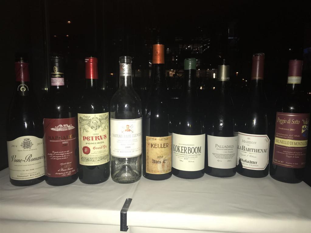 Da für aber gab es dann großes rotes Kino. Burgundisch, elegant und einfach betörend der 2007 Brunello di Montalcino vcn Poggio di Sotto, der sicher noch zulegen dürfte – WT94+. Erstaunlich frisch immer noch mit schöner, dunkler Kirsche und guter Säure der 1990 Pinot Nero San Urbano von Hofstätter aus Südtirol, der deulich zeigte, wie gut diese Weine altern können – WT92. Der Wein des Abends trotz starker Konkurrenz war der atemberaubende 2007 Barbaresco Riserva Asili von Bruno Giacosa. Was für ein geradezu sinnlicher Wein mit animierender, süßer, roter Frucht, mit Rosenblüten, Veilchen, Lakritz und teeriger Mineralität. Säure und Tannine waren kräftig, aber reif und gaben diesem großartigen, schon mit soviel Spaß trinkbaren Wein eine elegante, sehr harmonische Persönlichkeit – WT97+. Wer bisher gesagt hat, Piemont sei nichts für ihn, der wird hier vom Saulus zum Paulus. Sehr gut gefiel auch aus einem der nicht gerade größten Bordeauxjahre der 1994 Petrus, seinerzeit für kleines Geld in der Subskription gekauft und seitdem perfekt gelagert. Immer noch sehr kräftig mit guter Zukunft, aber auch rund, generös mit wunderbarer, pflaumiger Frucht in Bitterschokolade, einfach ein sexy wirkender Charmeur, wie man es von Petrus erwarten darf – WT95+. Absolut grandios als Abschluss auch der erstaunlich offene, sehr elegante 2014 Vosne Romanée von Emmanuel Rouget mit süßer Frucht – WT95.