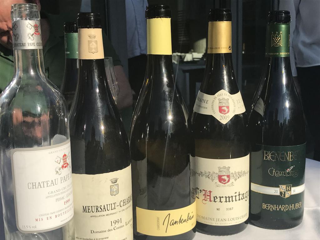 Seine zweite Chance bekam der 1999 Pape Clement Blanc, der sich diesmal in bestechender Form ohne Kork zeigte. In seiner Jugend wirkte dieser Wein etwas zurückhalten und geradezu schüchtern. Jetzt war er immer noch frisch, zeigte aber Komplexität und Tiefgang, wie man sie von einem großen Weßen Pessac erwarten darf – WT95. Reif zeigte sich der 1991 Meursault Charmes von Comte Lafon, auch in der Farbe, aber keinesfalls alt, am Gaumen würzig, nussig, mineralisch und druckvoll – WT94. Der 2007 Gantenbein Chardonnay zeigte deutlich, dass Warten bei diesem großartigen Wein lohnt. Er verliert den Babyspeck und gewinnt deutlich an burgundischen Konturen. Absolut altersfrei, sehr elegant und balanciert, burgundisch, balanciert mit feinstem Schmelz spielt da die Musik noch lange – WT96. Der Wein dieses wunderbaren Nachmittages aber war der schlichtweg außerirdische 2009 Hermitage Blanc von Chave, bei dem einfach alles stimmte, perfekte Frucht, präzise Struktur, unglaublicher Druck und Länge, enorme Fülle und Dichte, gute Säure, absolute Begeisterung am Tisch – WT98+. Ja, der wird sich noch weiterentwickeln und zulegen. Dürfte perfekt altern, und das nicht nur Jahre, sondern Jahrzehnte. Eine solche Legende im Werden in kleinem Kreis aus großen Gläsern trinken zu dürfen, das hatte was. Klar hat es jeder andere Wein danach schwer, aber dieser geniale 2014 Bienenberg Chardonnay GG von Huber überzeugte trotzdem mit glockenklarer, frischer Frucht, intensiver Mineralität, gut eingebundenem, nicht dominantem Holz und sehr guter Struktur, könnte durchaus noch zulegen – WT94+.