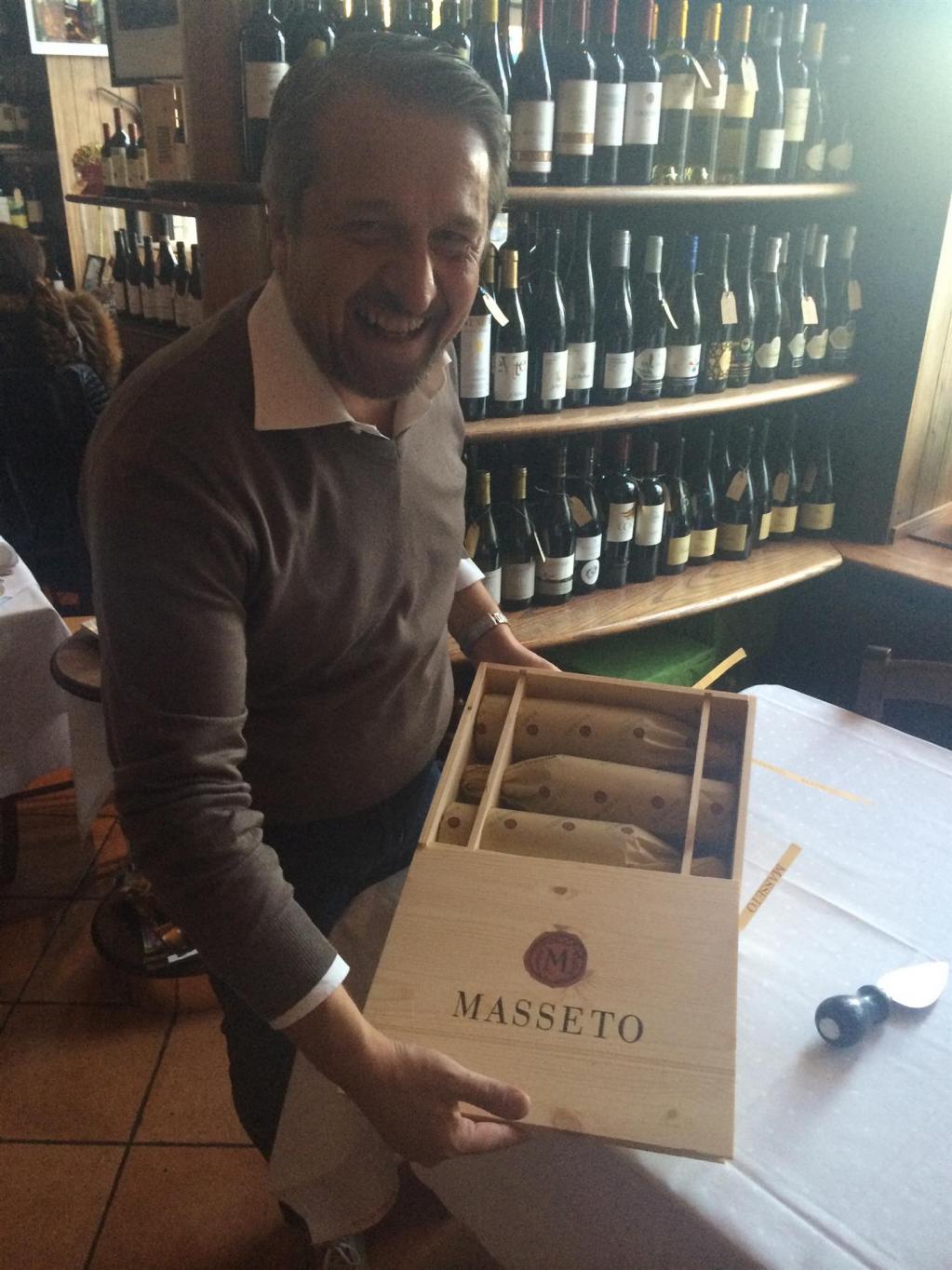 Und was macht man nach zwei so irren Geschossen? Wir wurden leichtsinnig. Da war in einer Ecker ein ganzer Stapel(!) von 2011 Masseto Kisten. Eigentlich nicht mein Ding, weil zwar gut, aber viel zu teuer. Leichtsinn, Übermut und Neugier ließen uns aber in eine intensive Verhandlung mit Michelangelo Saitta einsteigen. Und irgendwann hatten wir ihn soweit oder er uns, ganz wie man es nimmt. Die vornehme OHK öffnete sich, der Korken kam aus der Flasche, der Masseto in die Karaffe und dann in unsere Gläser. Dieser dritte Merlot aus Italien und 2011 war nicht nur der mit Abstand teuerste, er war auch der verschlossenste mit gewaltiger Struktur und Substanz. Klar waren da auch reife, dunkle Früchte, eine feine Kräuternote und schokoladiger Sex-Appeal. Aber alles eleganter, viel stimmiger und nobler. Nein, dieser Masseto ist bei aller Klasse eigentlich sein Geld nicht wert, aber eine Sünde wert ist er schon – WT96+.